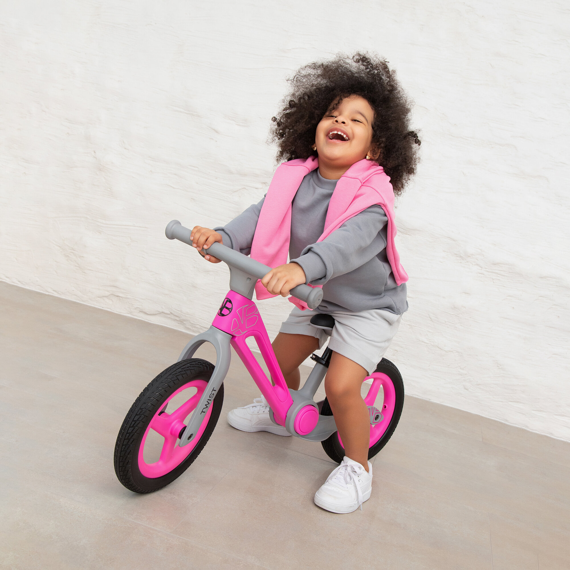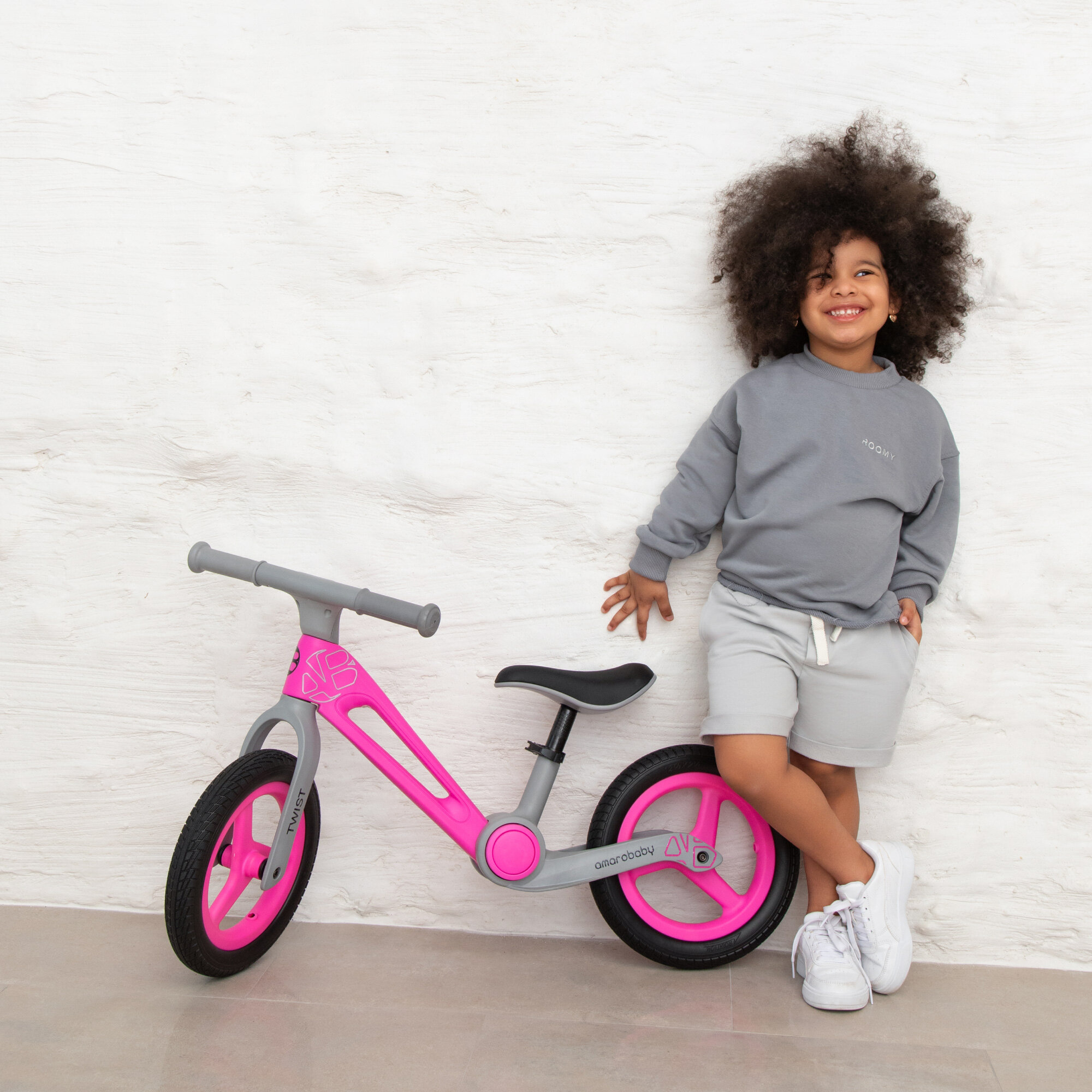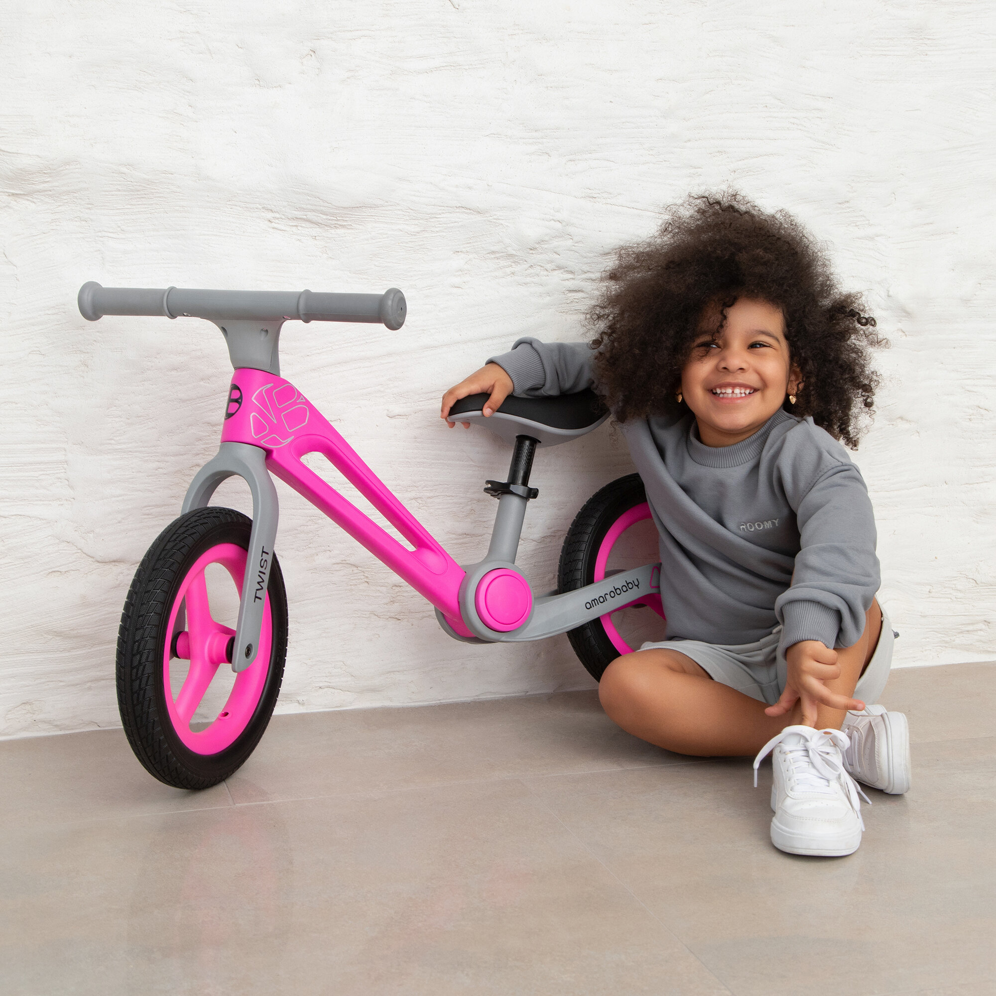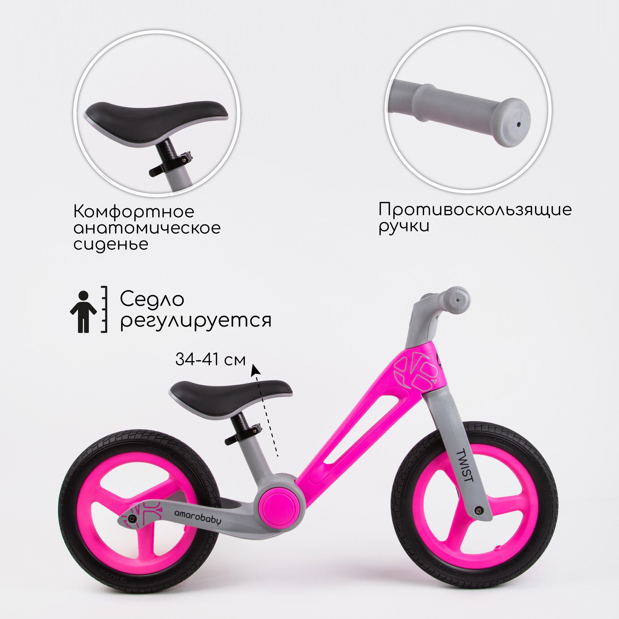 Двухколесный беговел Amarobaby Twist, розовый/серый интересное: