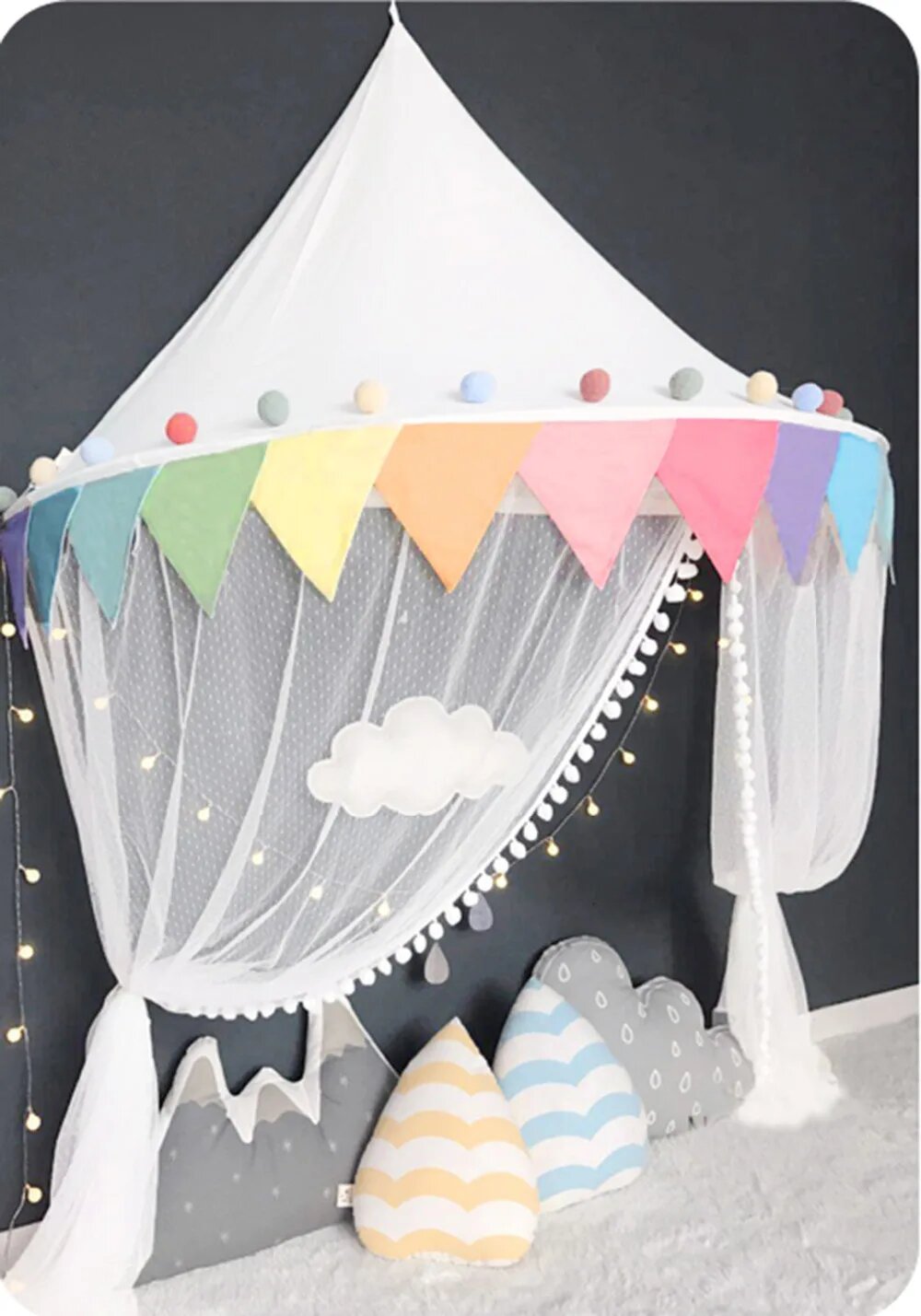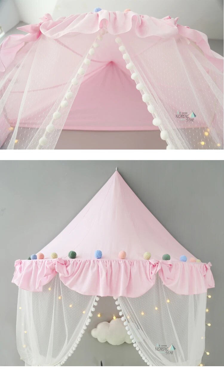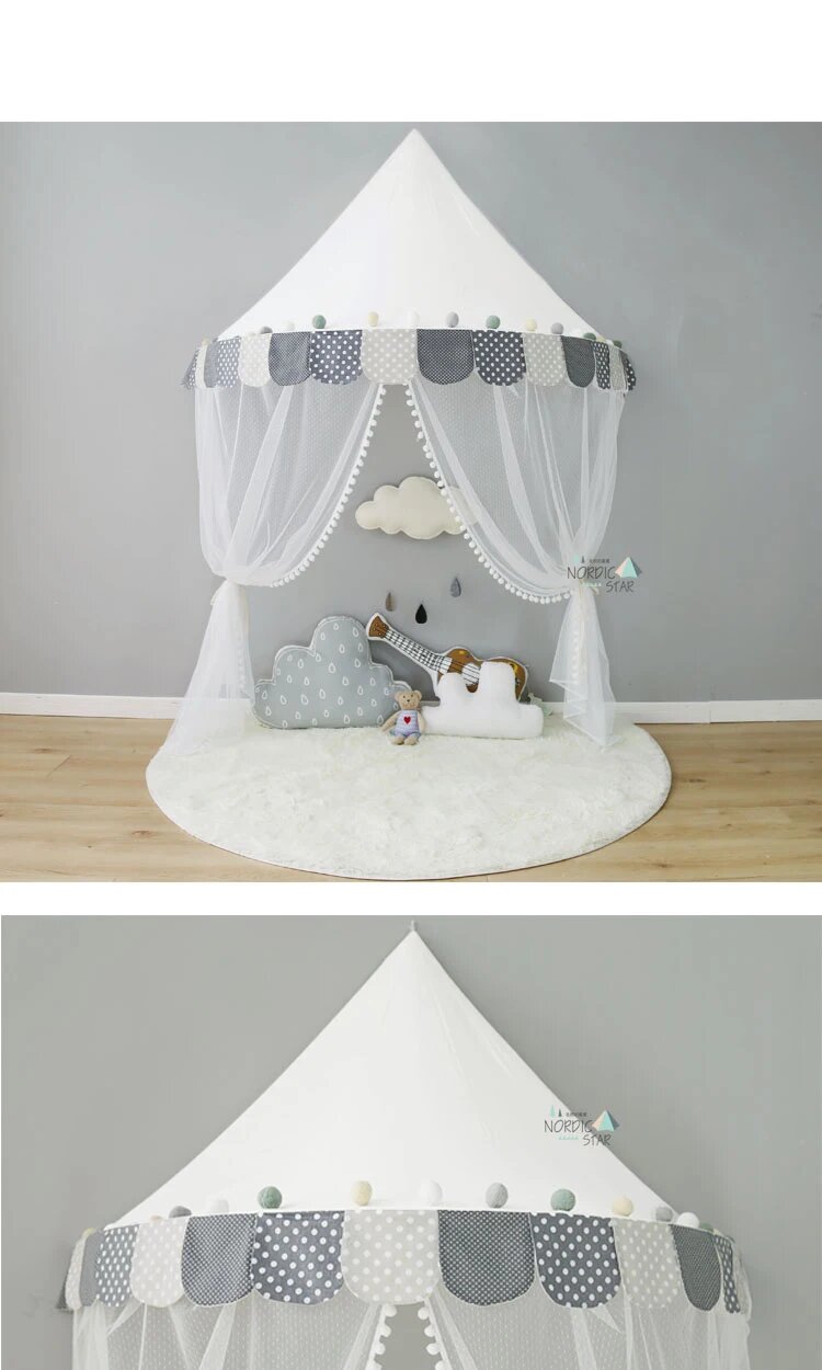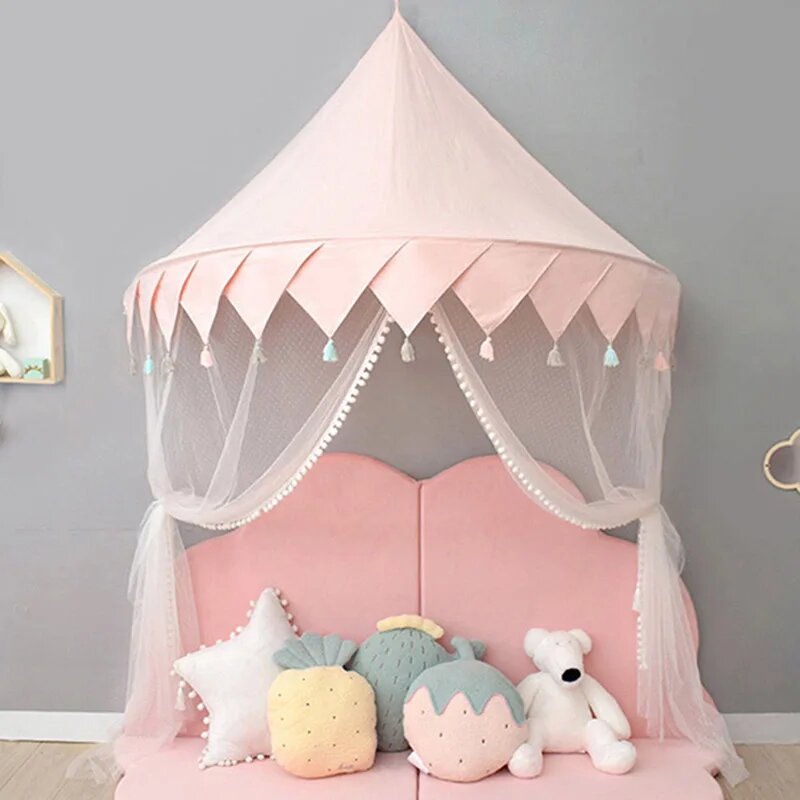 Детский игровой домик, яркие палатки, хлопковая складная палатка, навес, занавеска для кровати, детская кроватка, сетчатая отделка для комнаты девочек и мальчиков