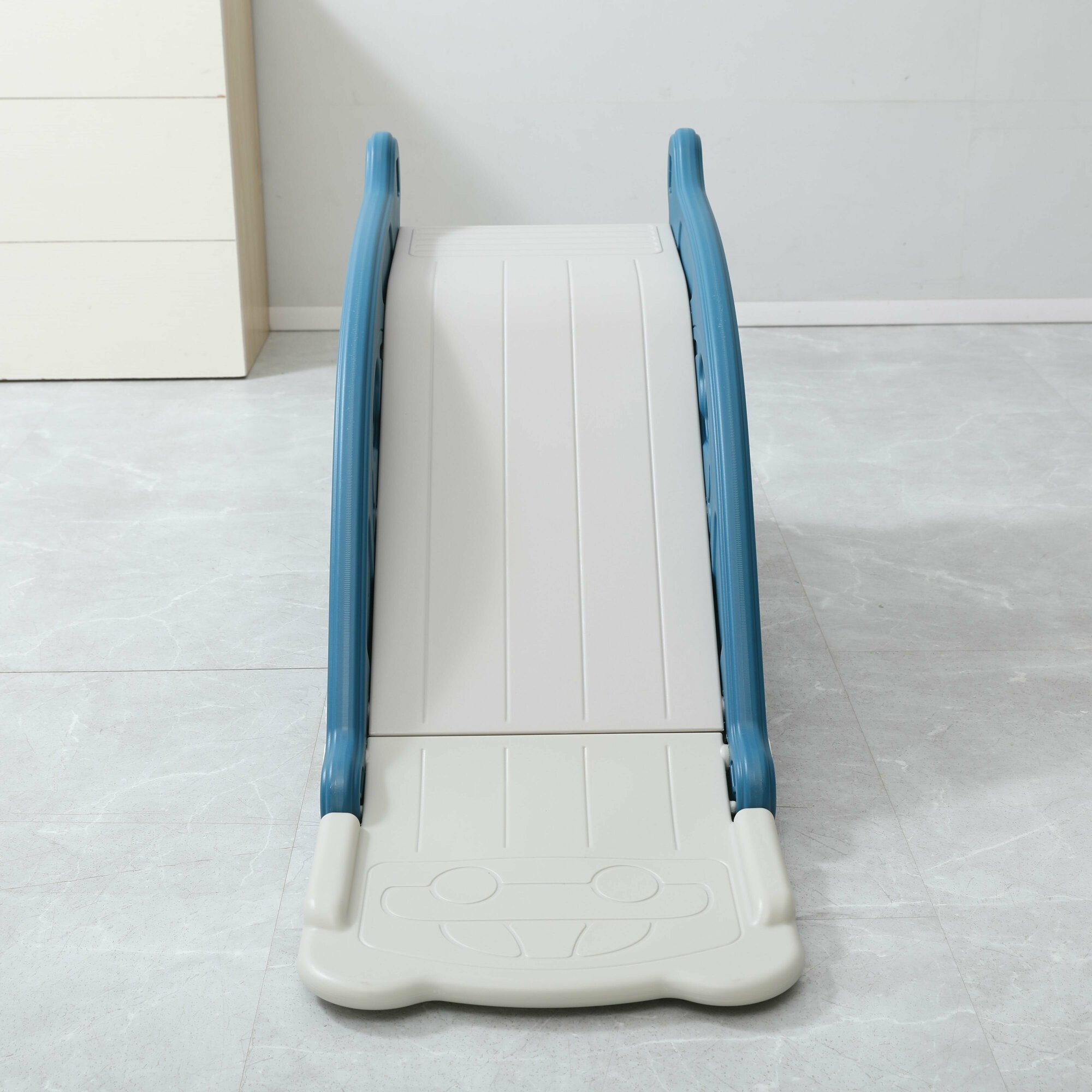 Горка детская UNIX Kids Grey с подставкой для ног, со спуском 112 см, из пластика, 2 ступени с поручнями, серый, белый