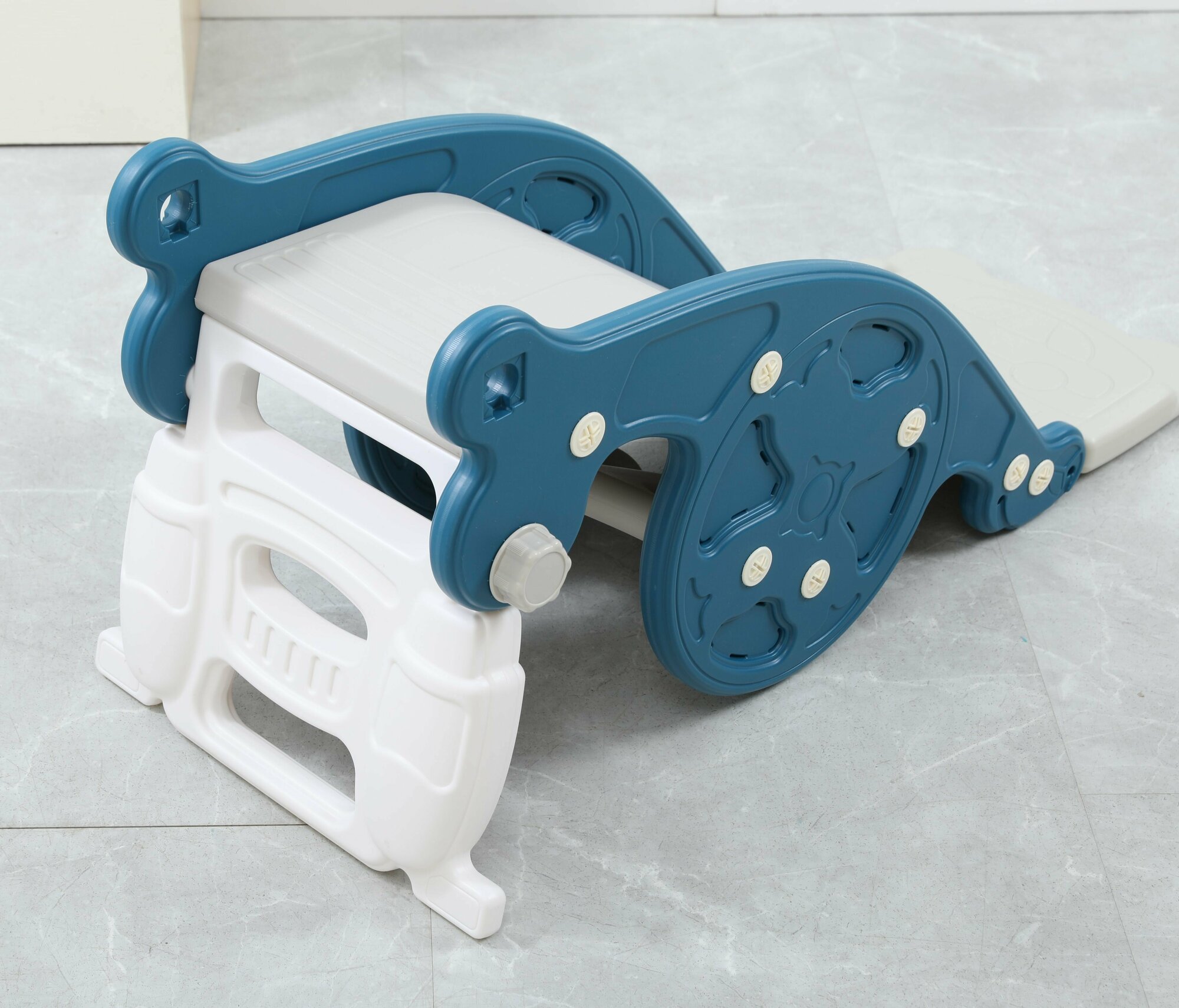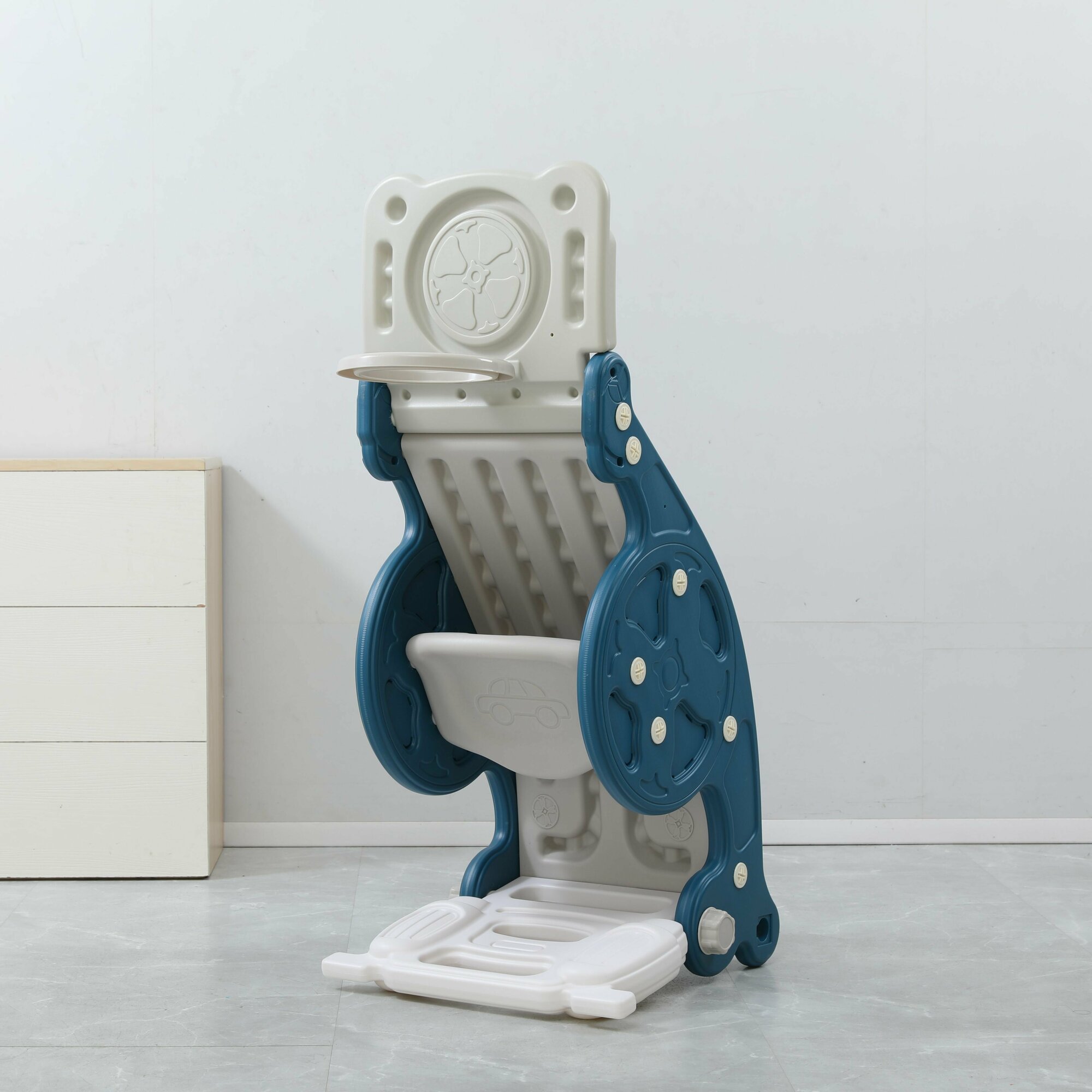 Купить Горка-трансформер UNIX Kids Blue, со спуском 95 см, из пластика, горка, качалка-балансир, баскетбольная стойка, 100х42х45 см, синий