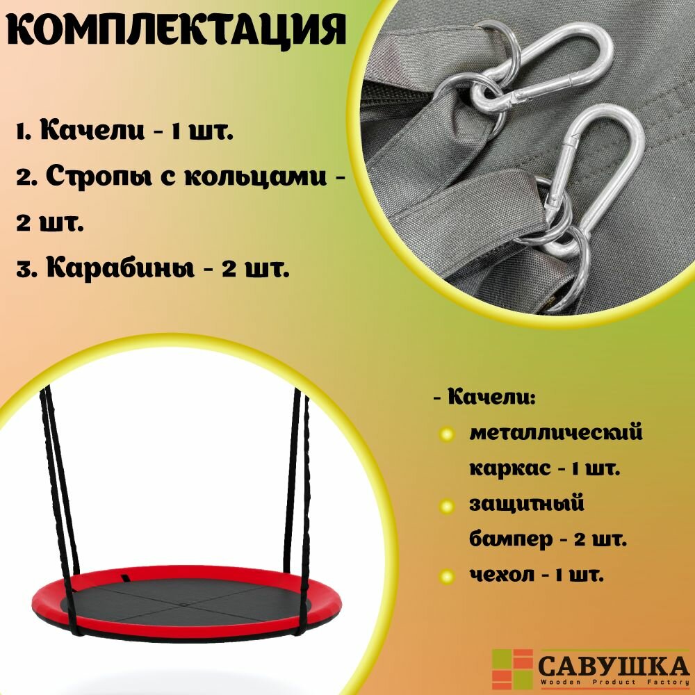 Ниже Вы можете прочитать отзывы на Качели 100 см круглые подвесные уличные Гнездо Савушка черный/красный, ознакомится с подробными характеристиками, посмотреть интересные обзоры и фотографии на Качели 100 см круглые подвесные уличные Гнездо Савушка черный/красный.