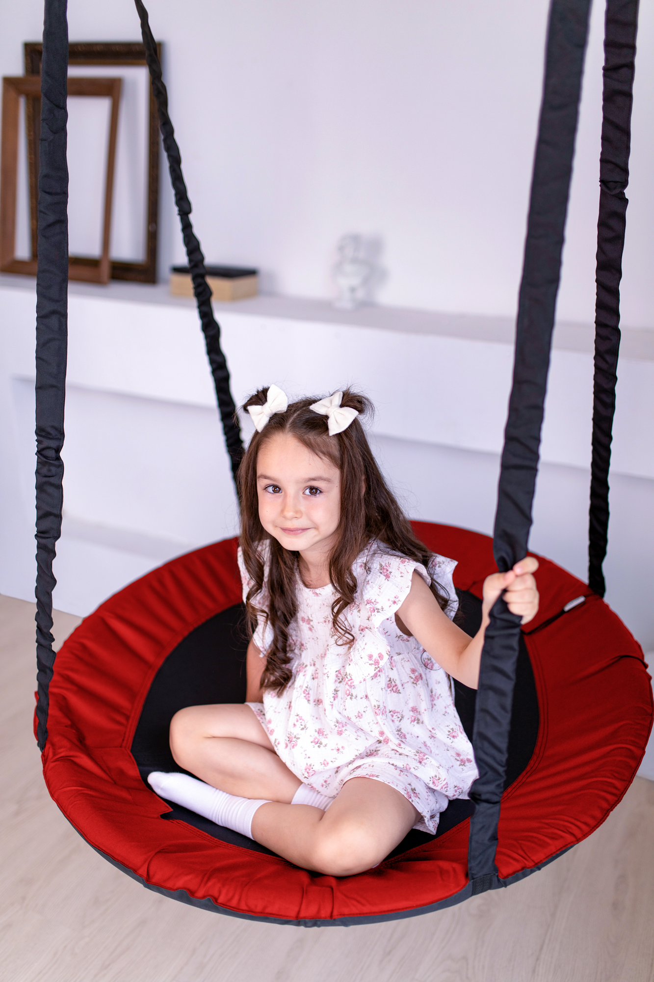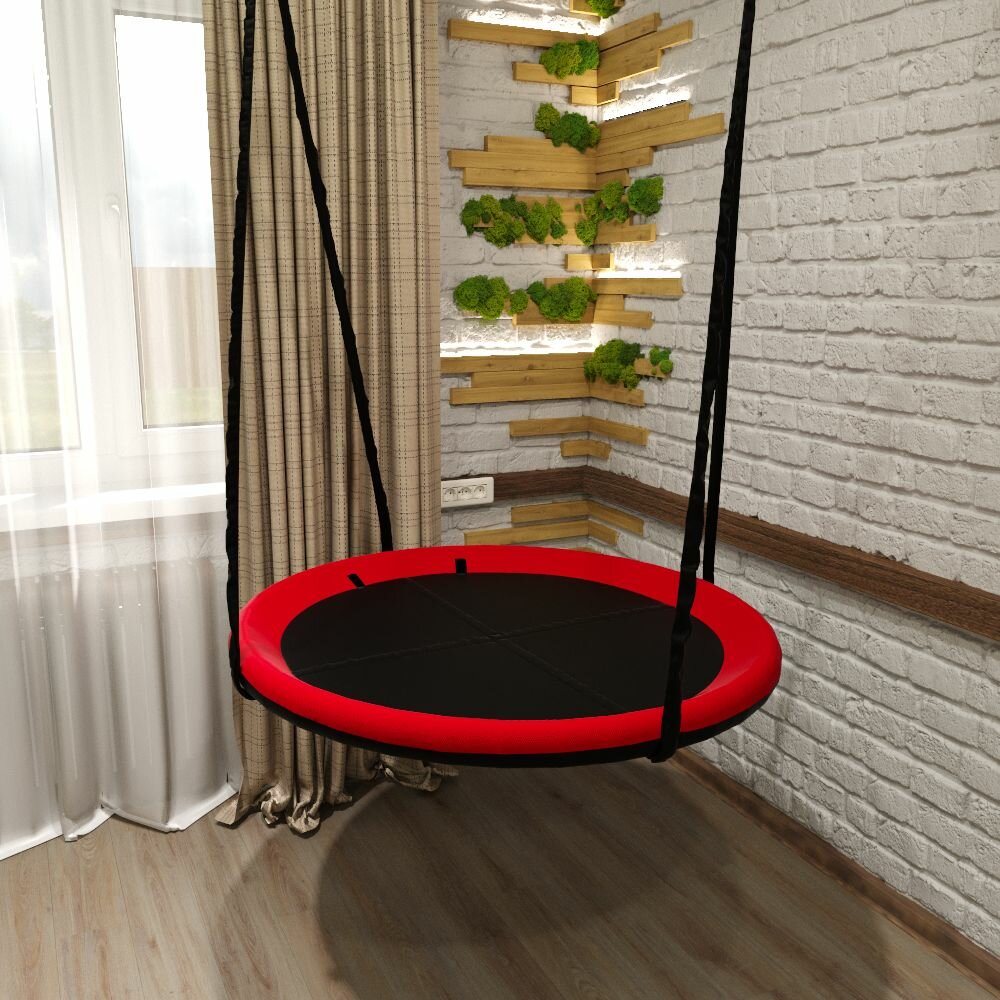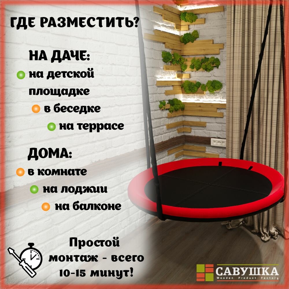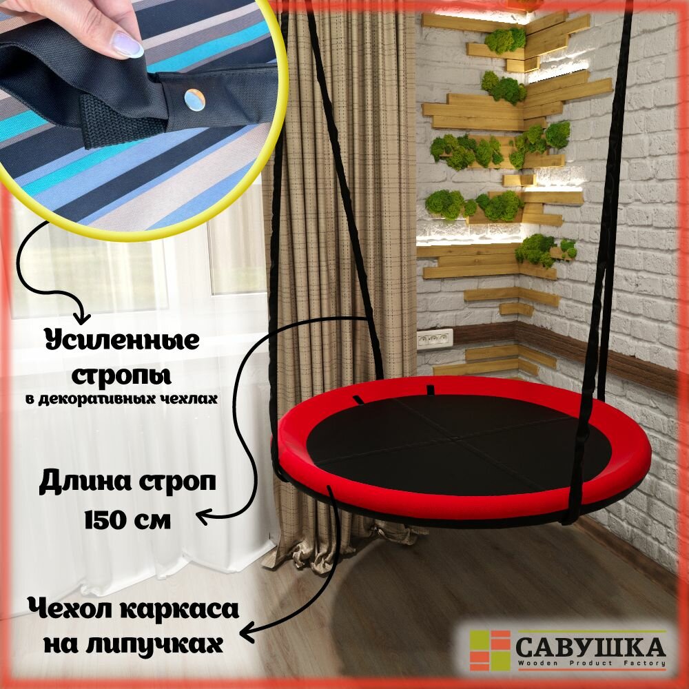 СохранитьКачели 100 см круглые подвесные уличные Гнездо Савушка черный/красный интересное: