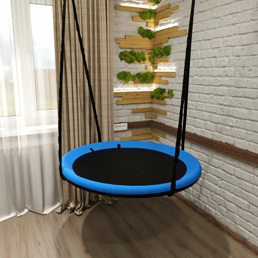 СохранитьКачели 100 см Гнездо черный/синий, подвесные для дома, для улицы, для детской площадки, Савушка интересное: