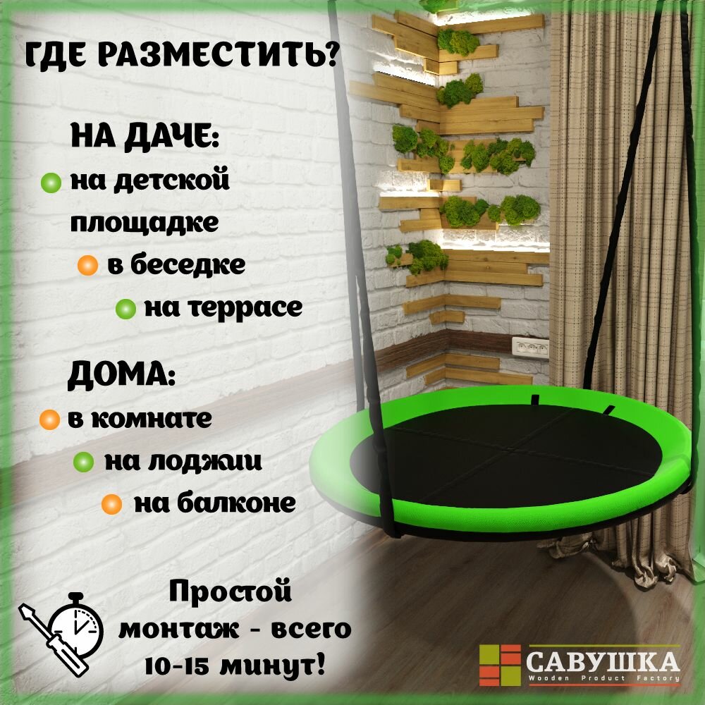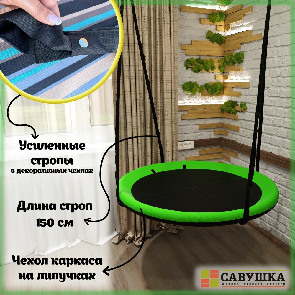 СохранитьКачели Гнездо 100 см Савушка подвесные уличные черный/зеленый интересное:
