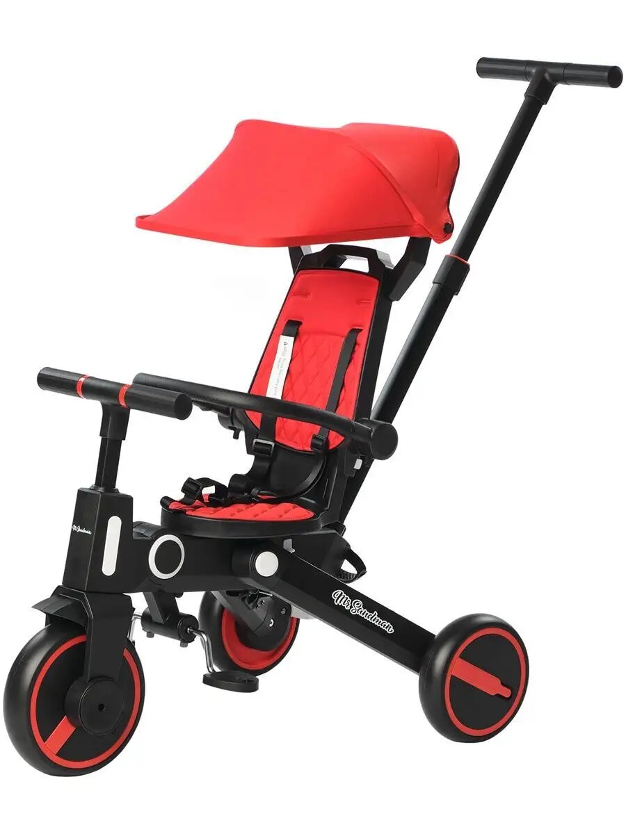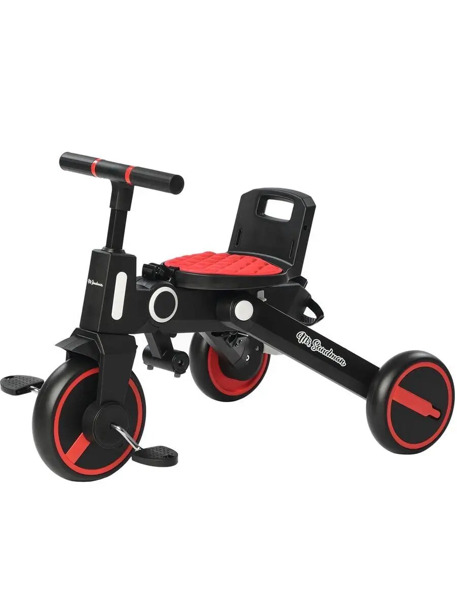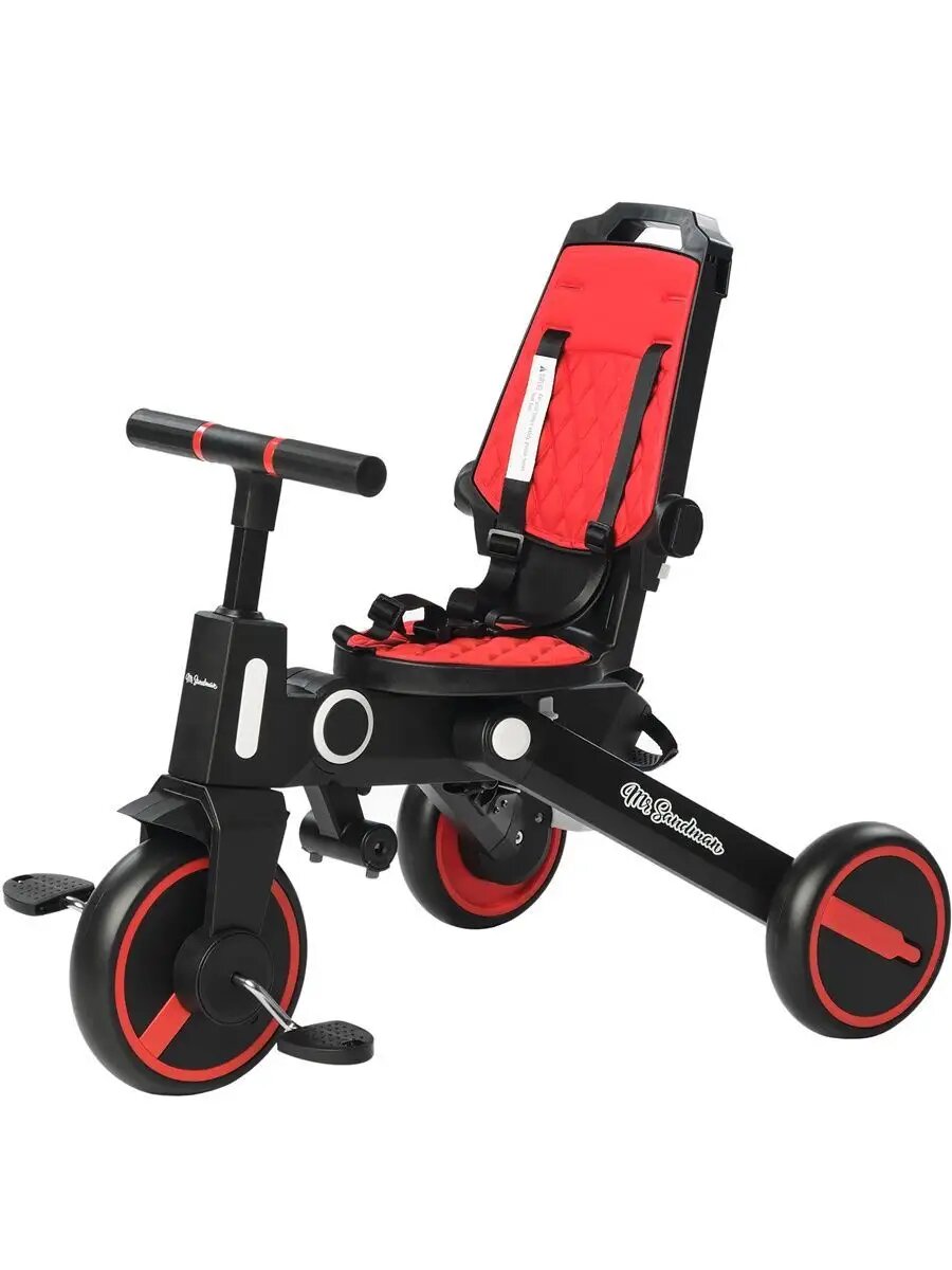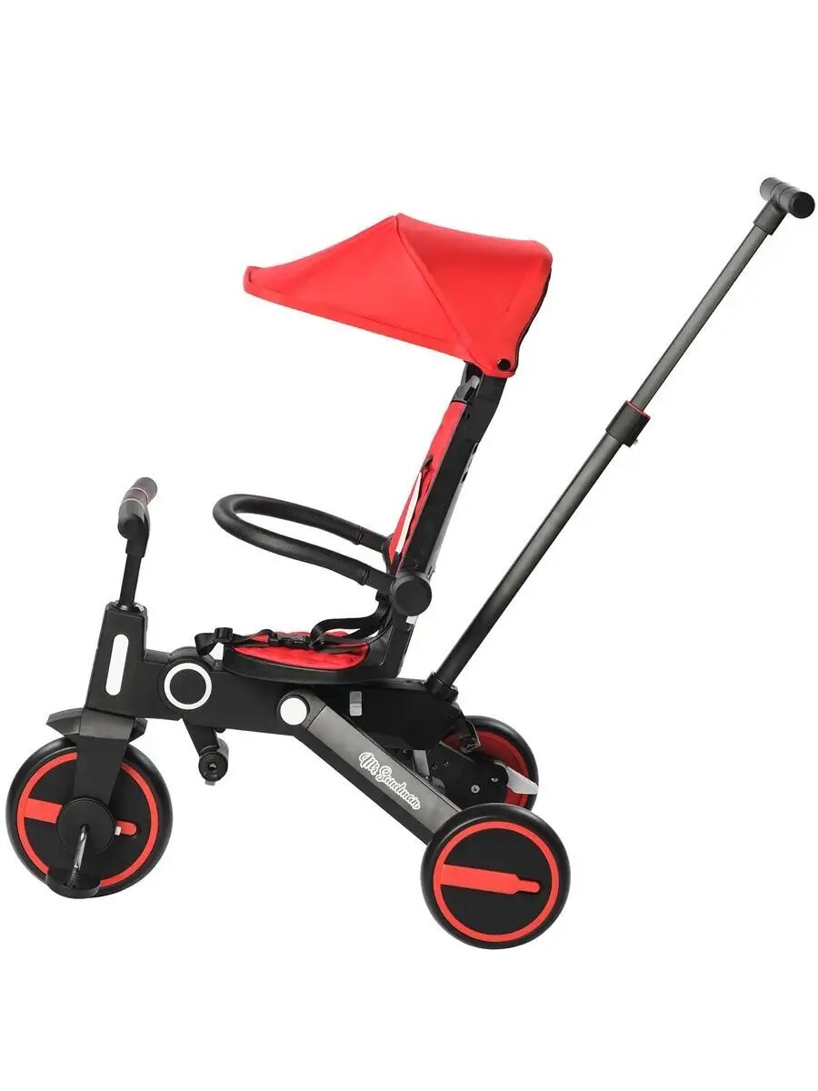 Велосипед трехколесный детский Mr Sandman, складной с родительской ручкой, цвет черный/красный