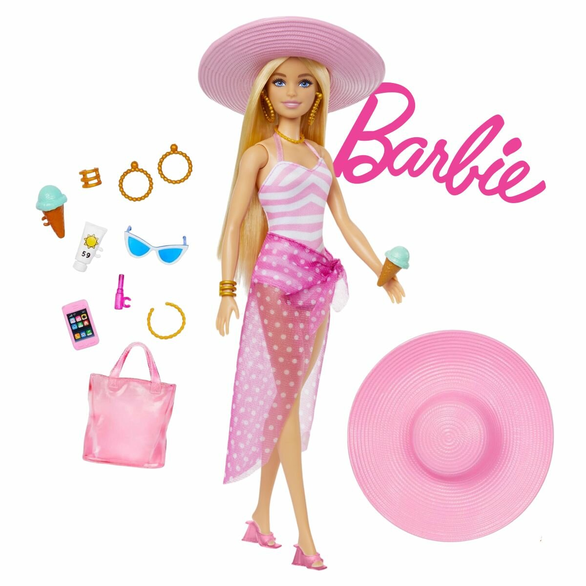 Кукла Barbie Mattel HPL73 блондинка Барби в купальнике и с аксессуарами в пляжном стиле
