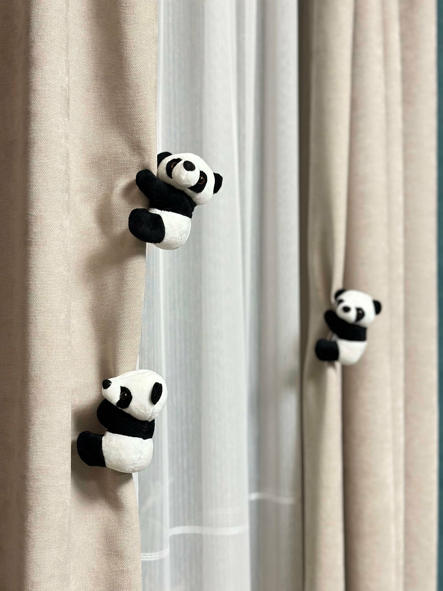 Комплект 3 шт. Мягкая плюшевая игрушка "Панда" 9см (универсальный зажим)