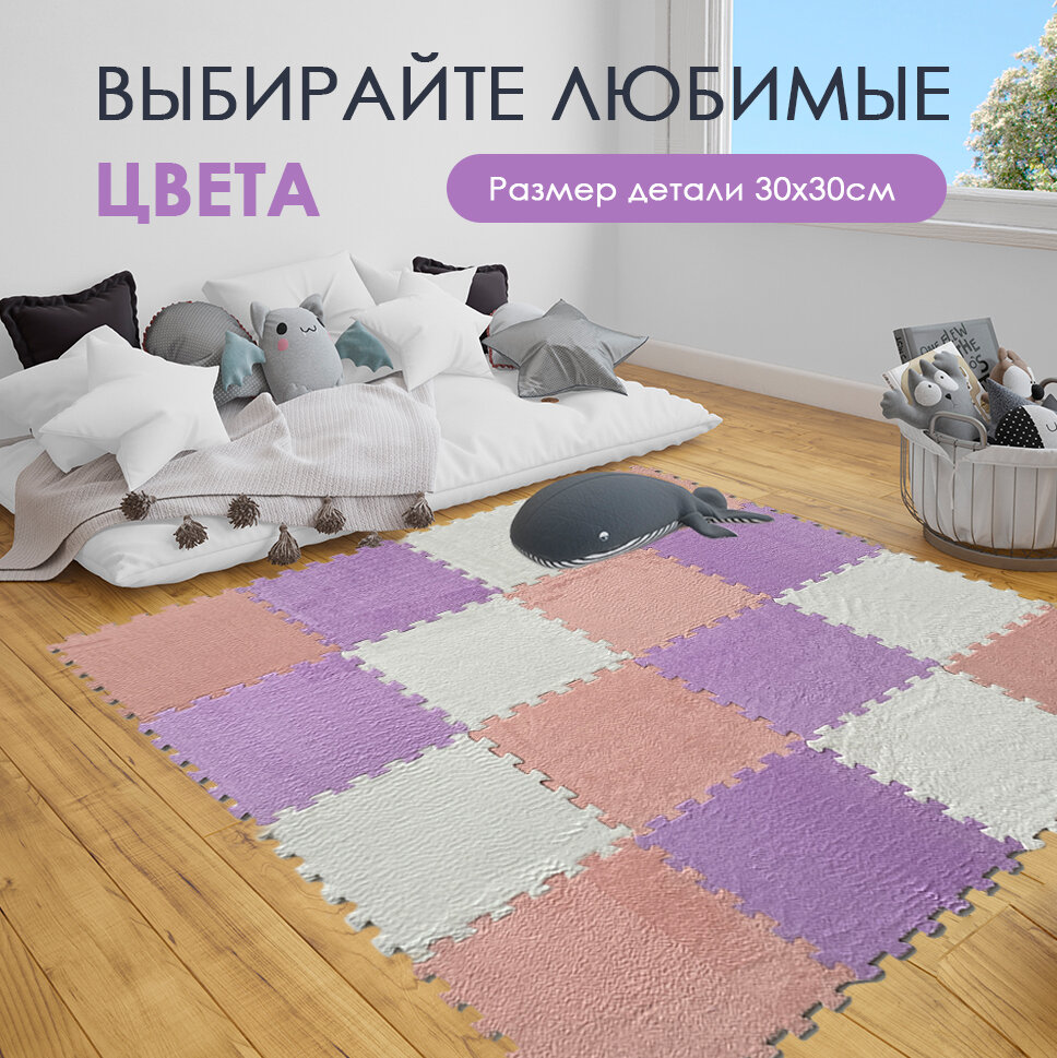 Коврик-пазл Baizheng махровый, упаковка 10 штук, размер 30х30х1,5см, цвет сиреневый