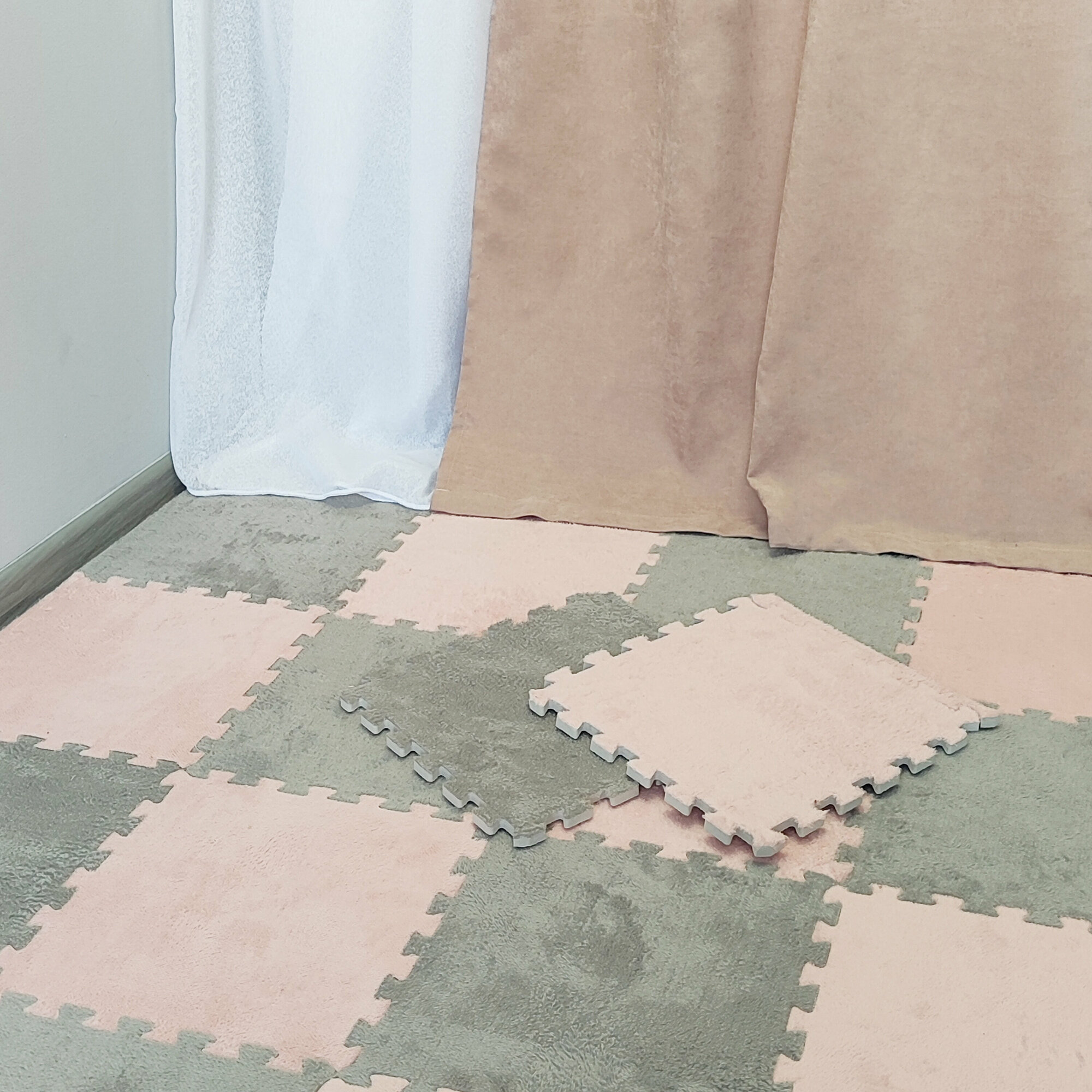Коврик-пазл Baizheng махровый, упаковка 10 штук, размер 90х90х1,5см, цвет зеленый