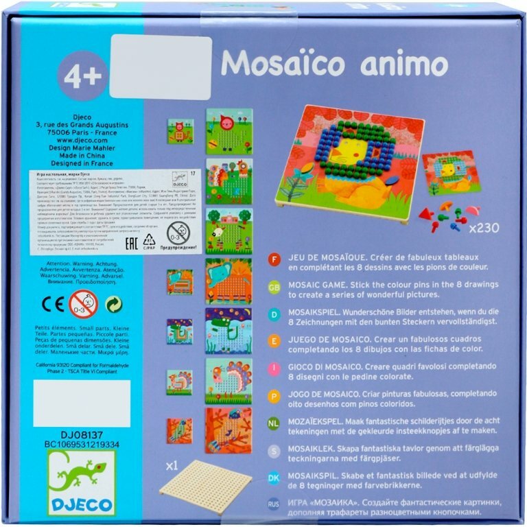 Djeco Мозаика гвоздики "Животные", развивающая игра для детей от 4 лет
