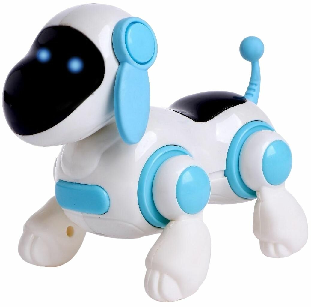 Собачка-робот игрушечная "Умный Тобби" двигающаяся, ходит и бегает, со световыми и звуковыми эффектами, работает от батареек, цвет голубой
