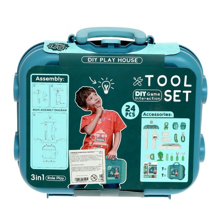 Детский набор игрушечных инструментов "Собери сам" в чемодане, сюжетно-ролевая игра для мальчиков, юный строитель и слесарь, 50 предметов интересное: