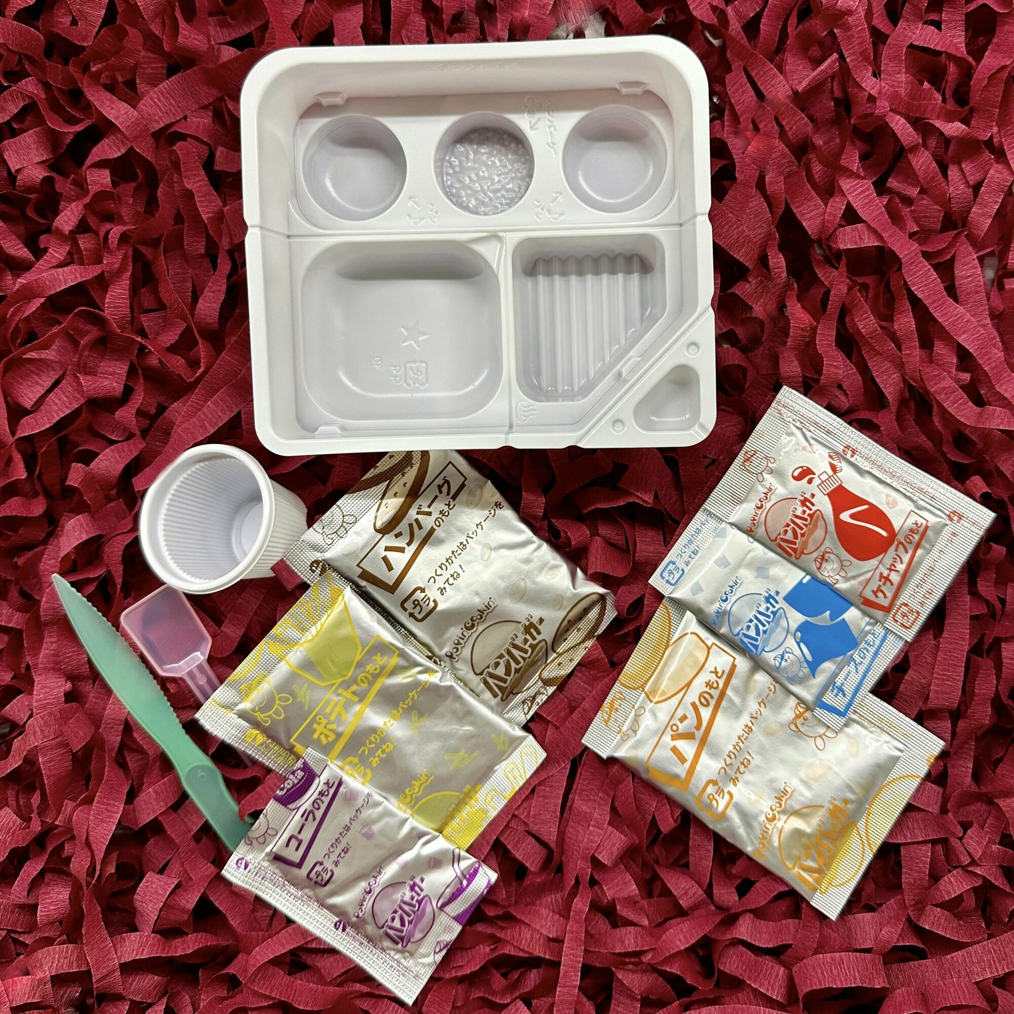 | Комплектация | контейнер-форма, ложка, бутылочка, конфета для создания нори, 6 пакетиков с порошковой смесью для омлета, тунца, риса, соевого соуса и икры |