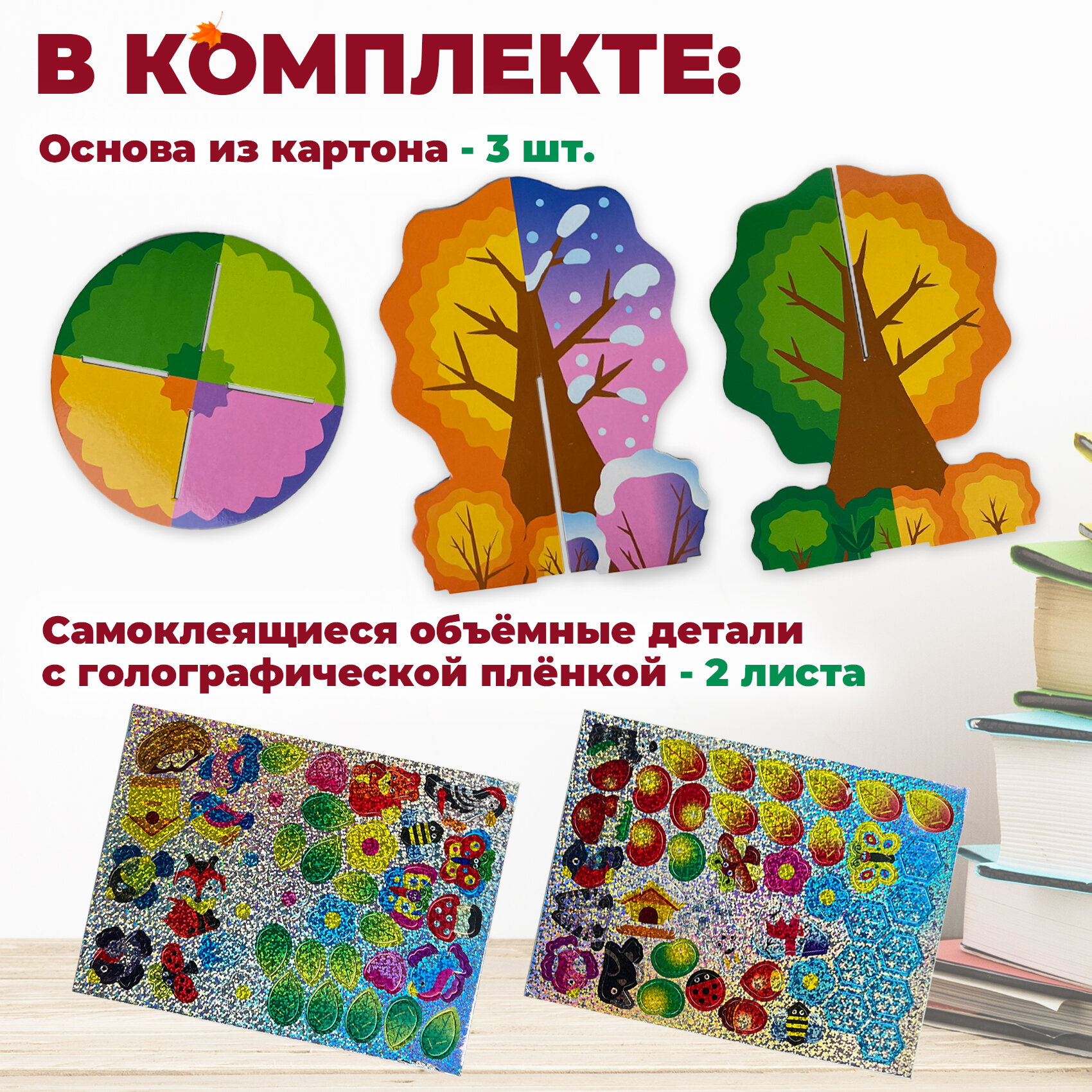 | Дополнительная информация | В комплекте: детали дерева из картона (3 шт.), самоклеящиеся детали из ЭВА с голографической плёнкой (2 листа). |