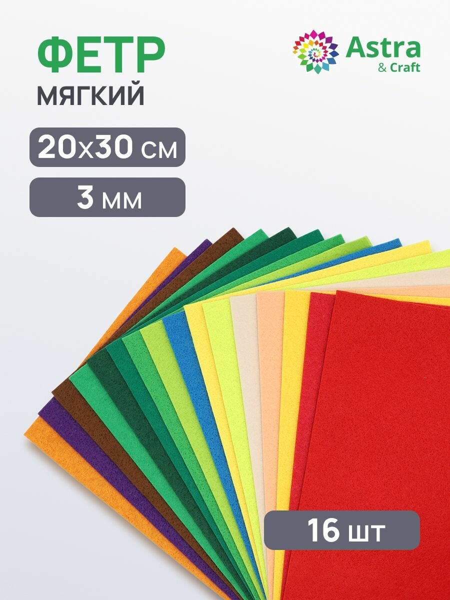 Купить Набор фетра мягкого листового ассорти, 3 мм, 20х30 см, 16 шт, Astra&Craft (1)