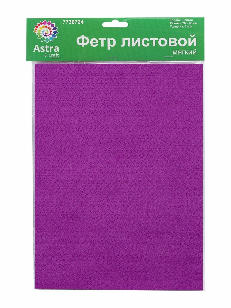 СохранитьФетр листовой мягкий 3 мм, Astra&Craft, 20х30 см, 3 шт (AF880 фиолетовый) интересное: