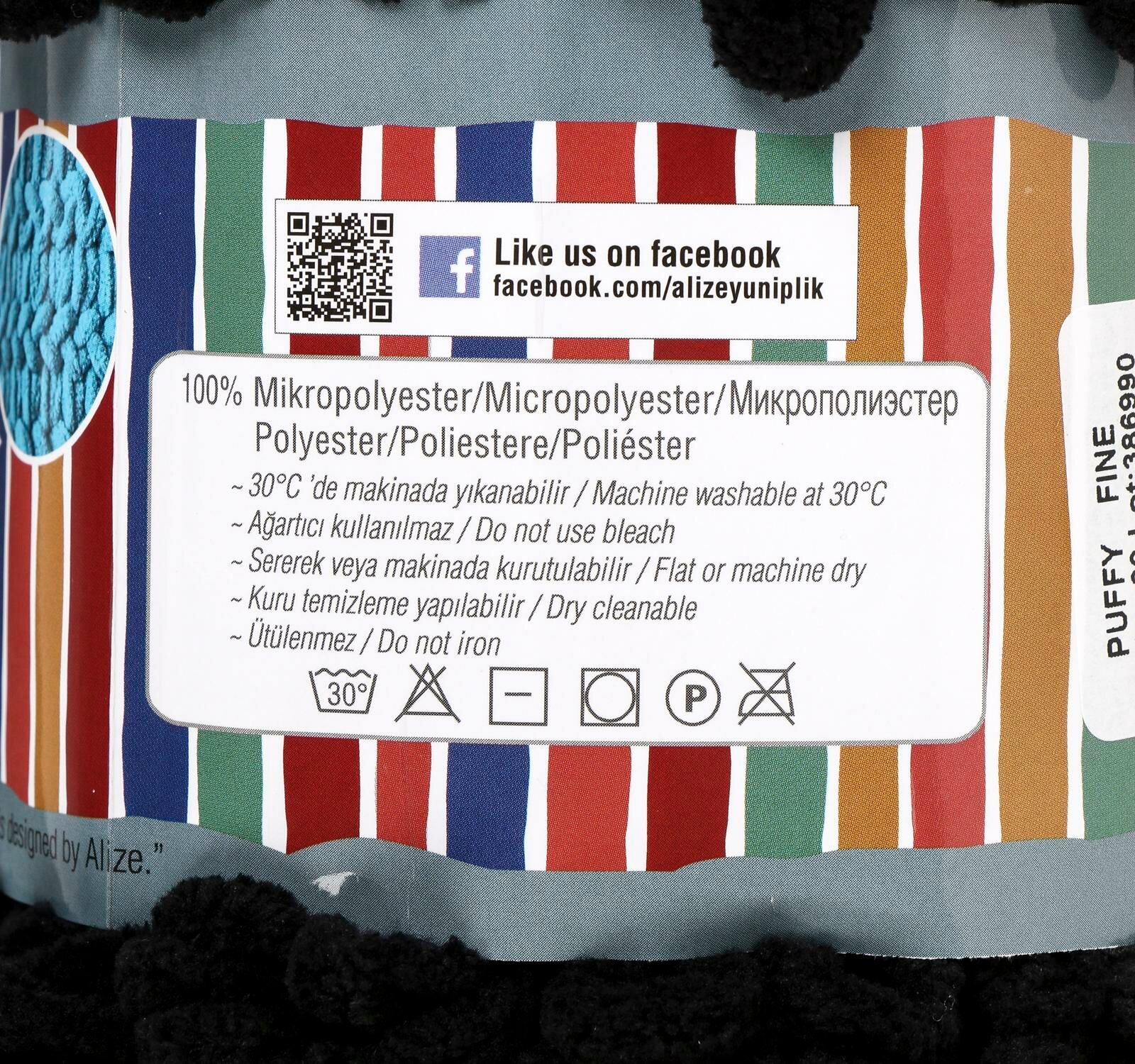 Пряжа для вязания руками с петлями ALIZE 'Puffy Fine' 100г, 14,5м (60 черный), 5 мотков