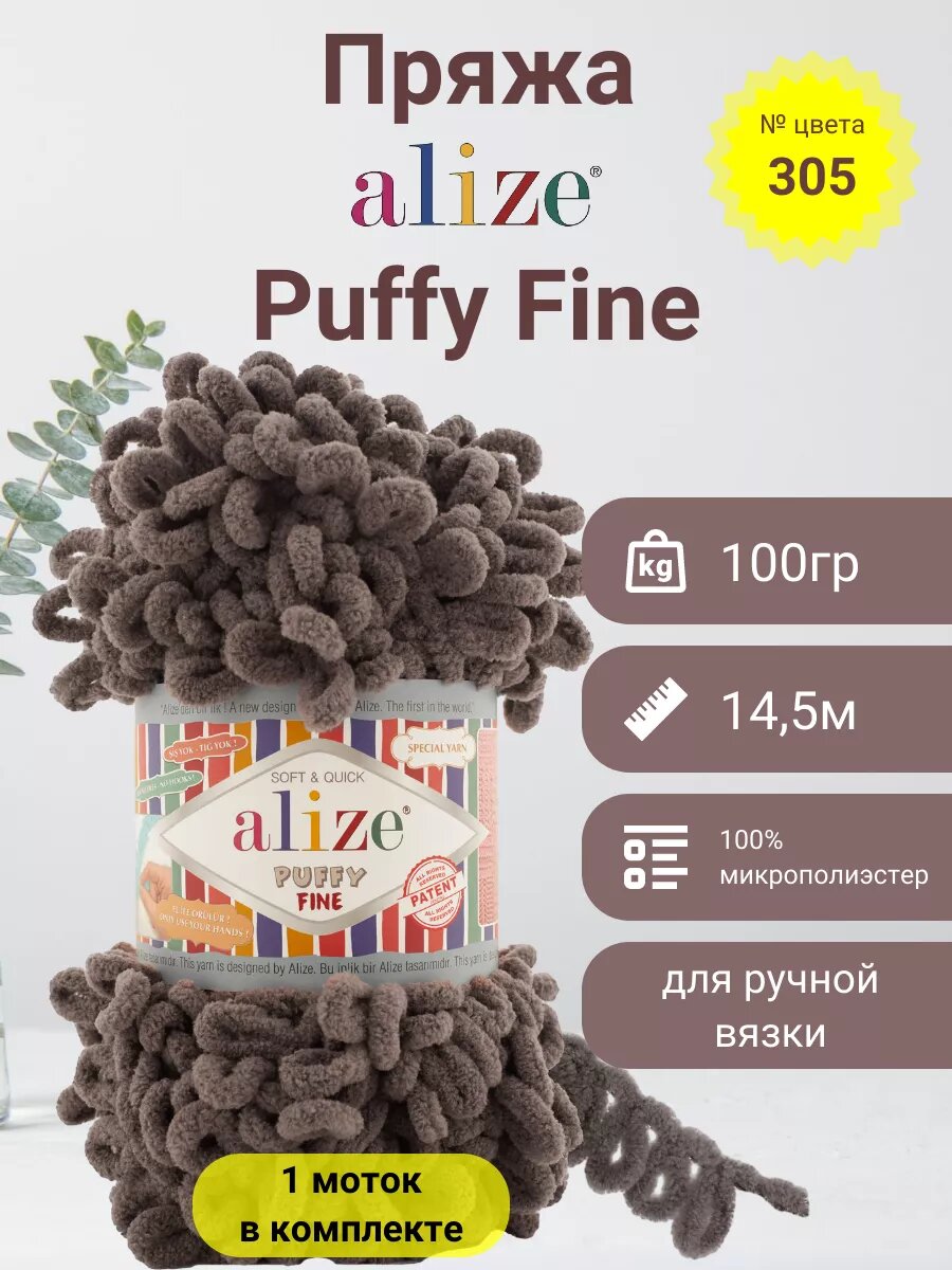 СохранитьПряжа Alize Puffy fine каштановый (305), 100%микрополиэстер, 14.5м, 100г, 1шт интересное: