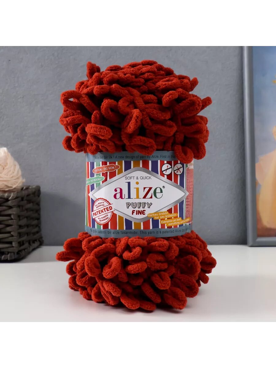 Пряжа для вязания руками с готовыми петлями ALIZE 'Puffy Fine' 100г, 14,5м (90 терракот), 5 мотков