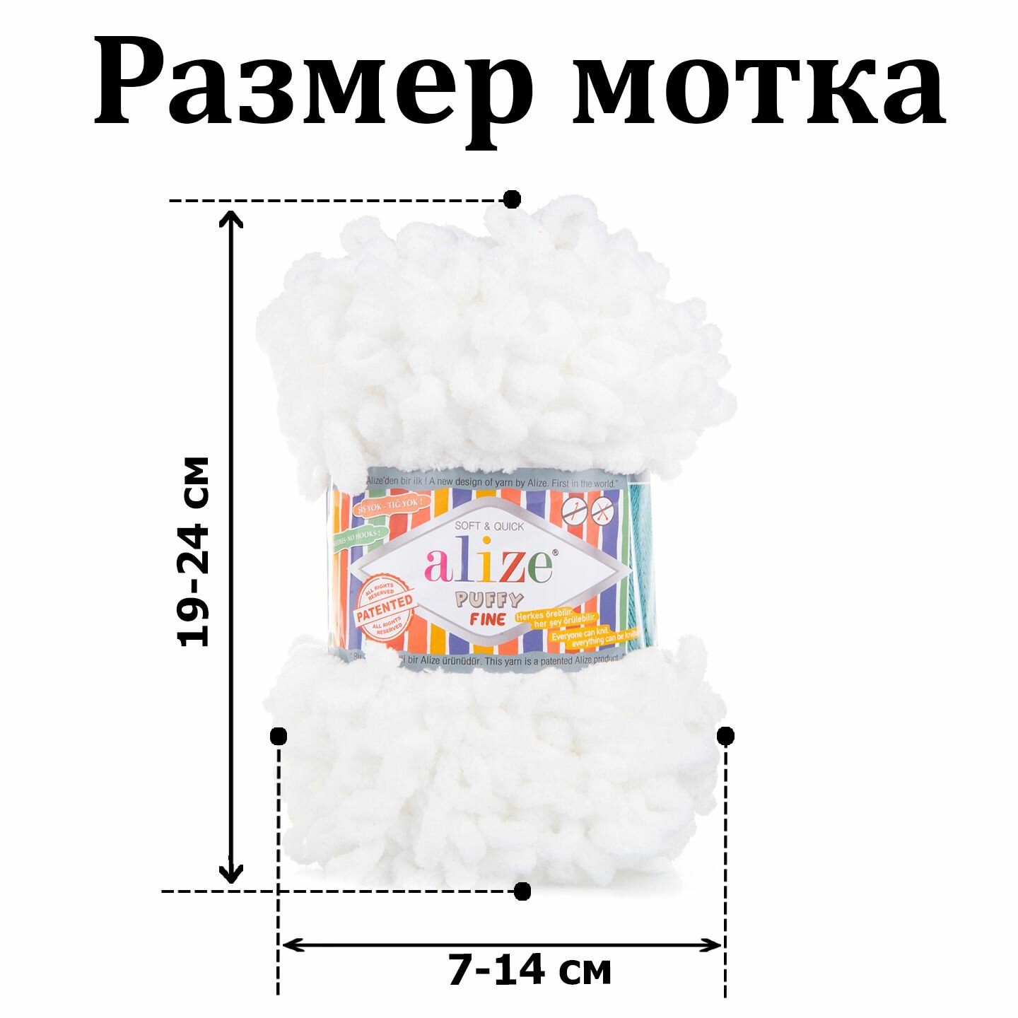 Пряжа PUFFY FINE (Alize), белый - 55, 100% микрополиэстер, 5 мотков, 100 г, 14 м.