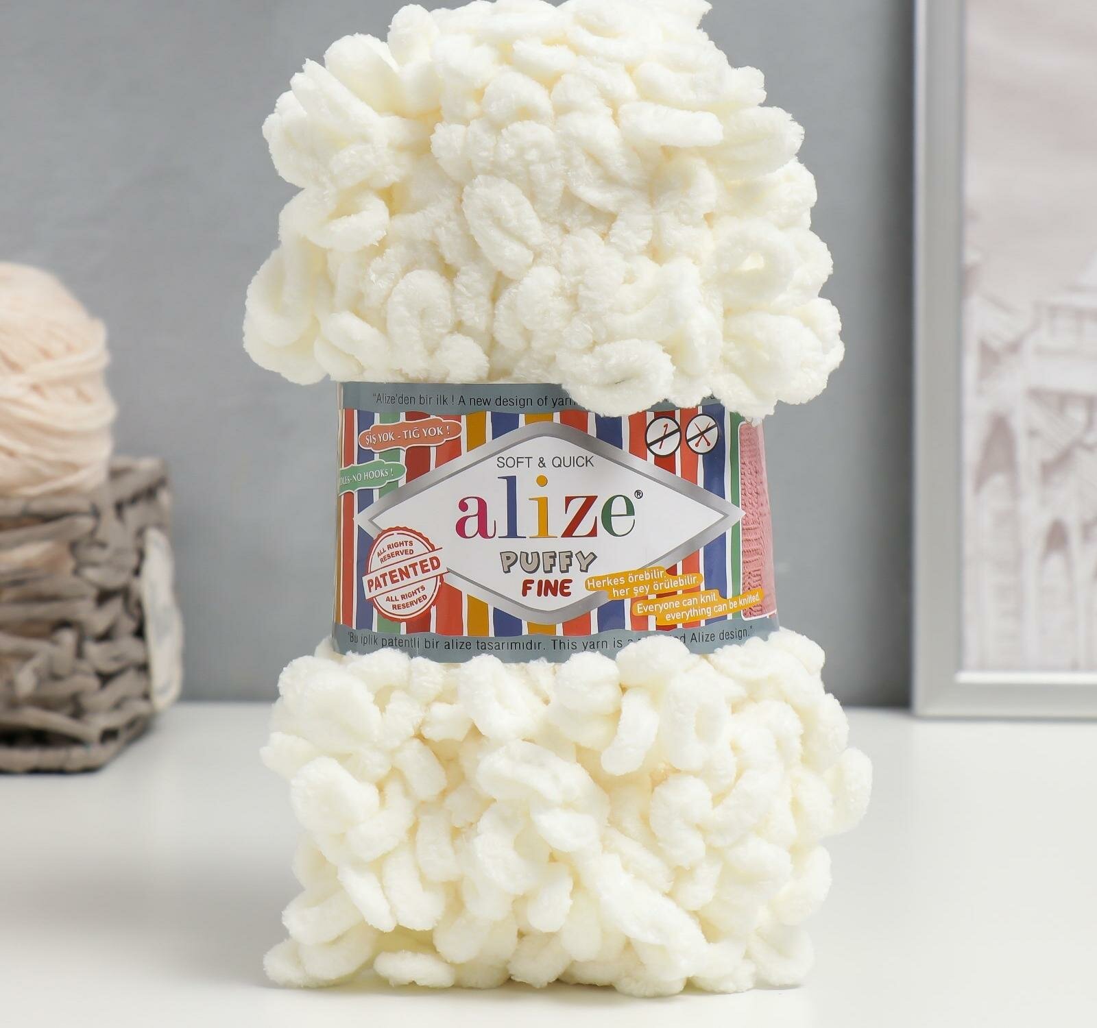 Пряжа PUFFY FINE (Alize), белый - 55, 100% микрополиэстер, 5 мотков, 100 г, 14 м.