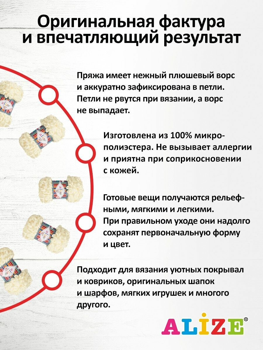 СохранитьПряжа для вязания руками с петлями ALIZE 'Puffy Fine' 100г, 14,5м (62 светло-молочный), 5 мотков интересное: