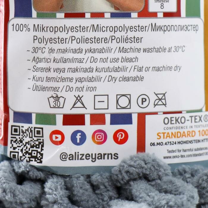 СохранитьПряжа Alize Puffy fine угольный серый (343), 100%микрополиэстер, 14.5м, 100г, 1шт интересное:
