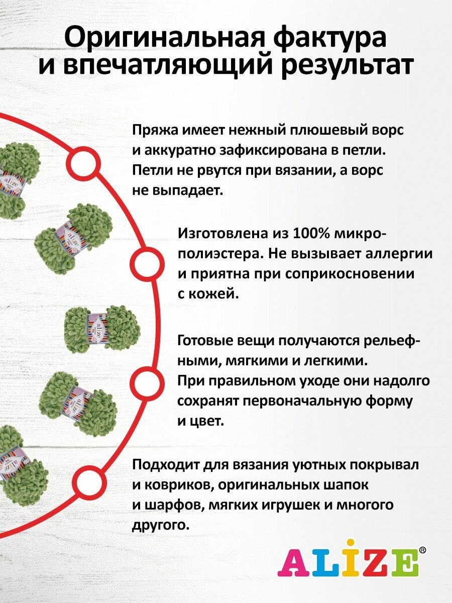 СохранитьПряжа для вязания руками с петлями ALIZE 'Puffy Fine' 100г, 14,5м (485 зеленая черепаха), 5 мотков интересное: