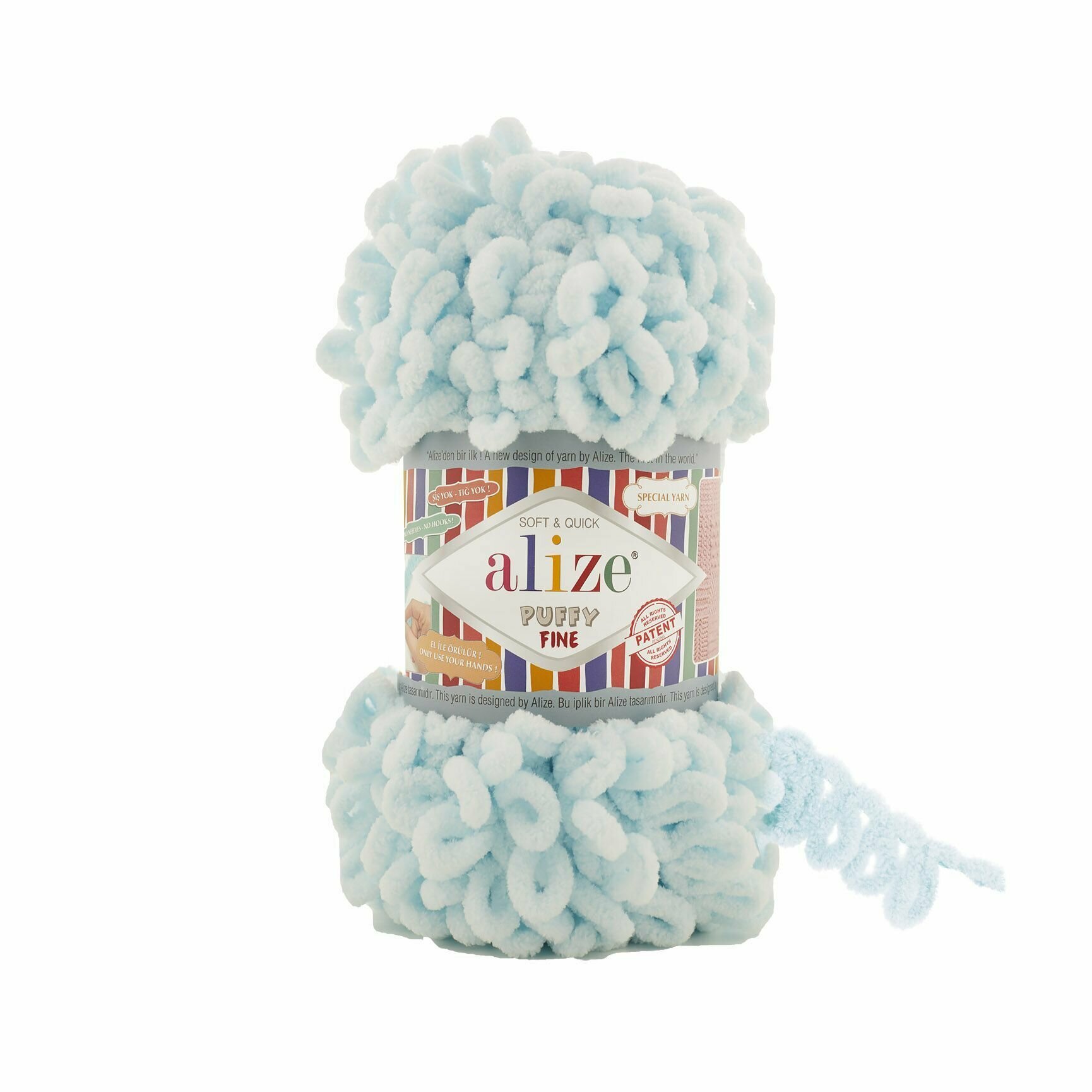 Пряжа для вязания плюшевая Alize Puffy Fine, цвет 112 голубой, 100г, 14,5м, 5 шт/упак