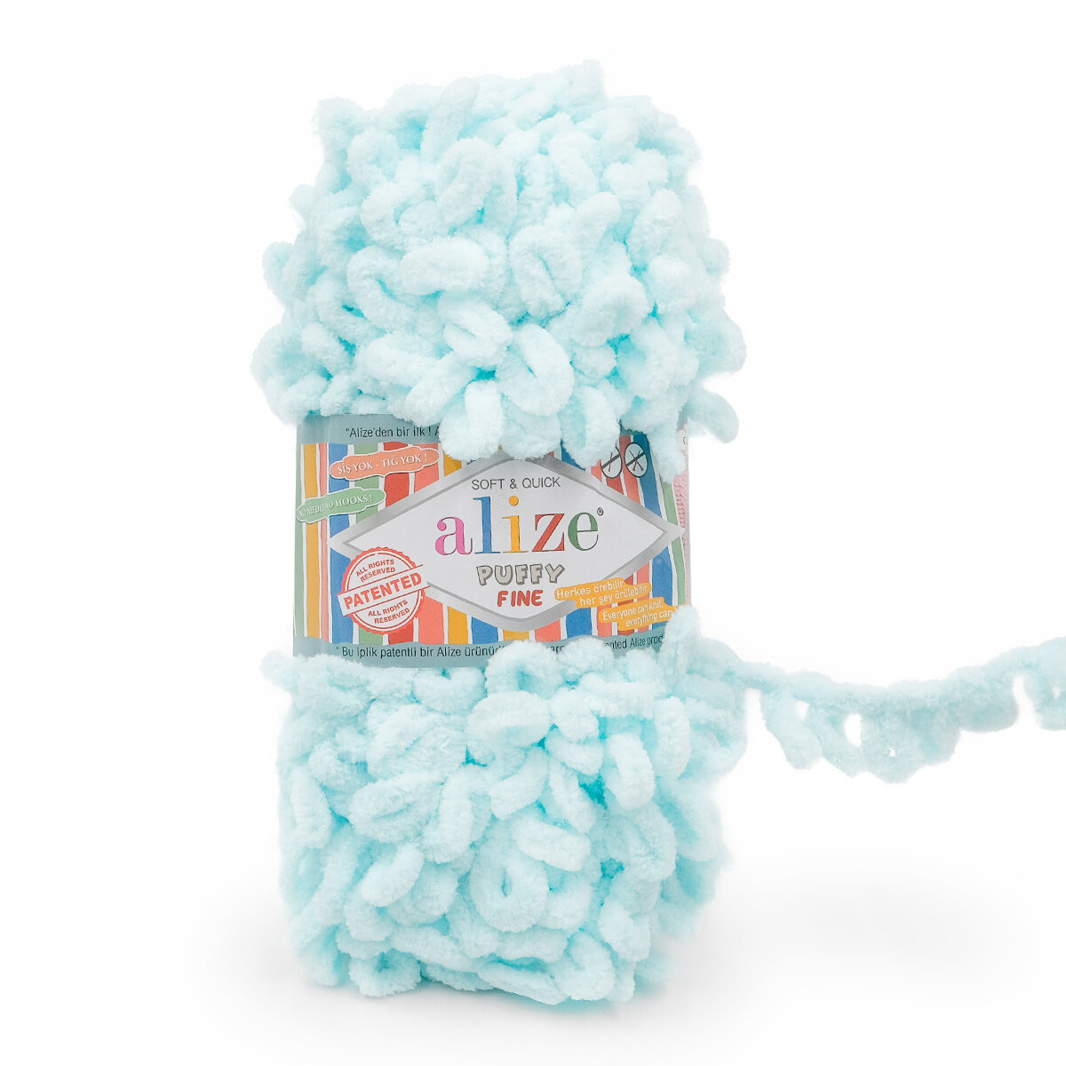 Пряжа Alize Puffy Fine -1 шт, 414 лазурный, 14 м/100 г, маленькие петли (2 см) /Ализе Пуффи файн/