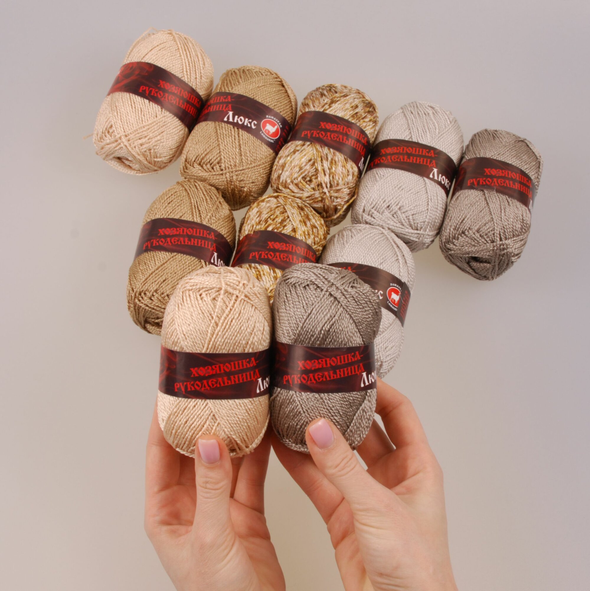 | Комплектация | 10 мотков пряжи Хозяюшка-рукодельница "Люкс", крючок для вязания №3 |