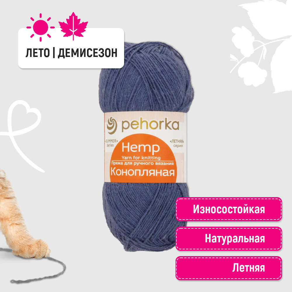Пряжа Пехорка Конопляная новая джинса (770), 70%хлопок/30%конопля, 280м, 50г, 1шт