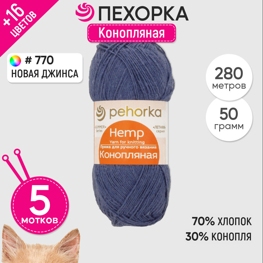 Купить Пряжа Пехорка Конопляная новая джинса (770), 70%хлопок/30%конопля, 280м, 50г, 5шт