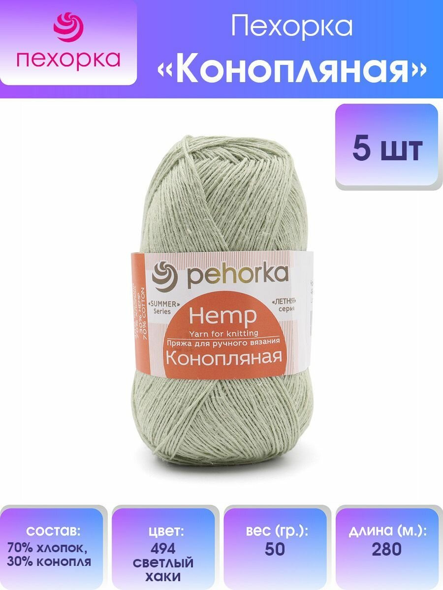 Купить Пряжа Пехорка Конопляная светлый хаки (494), 70%хлопок/30%конопля, 280м, 50г, 5шт