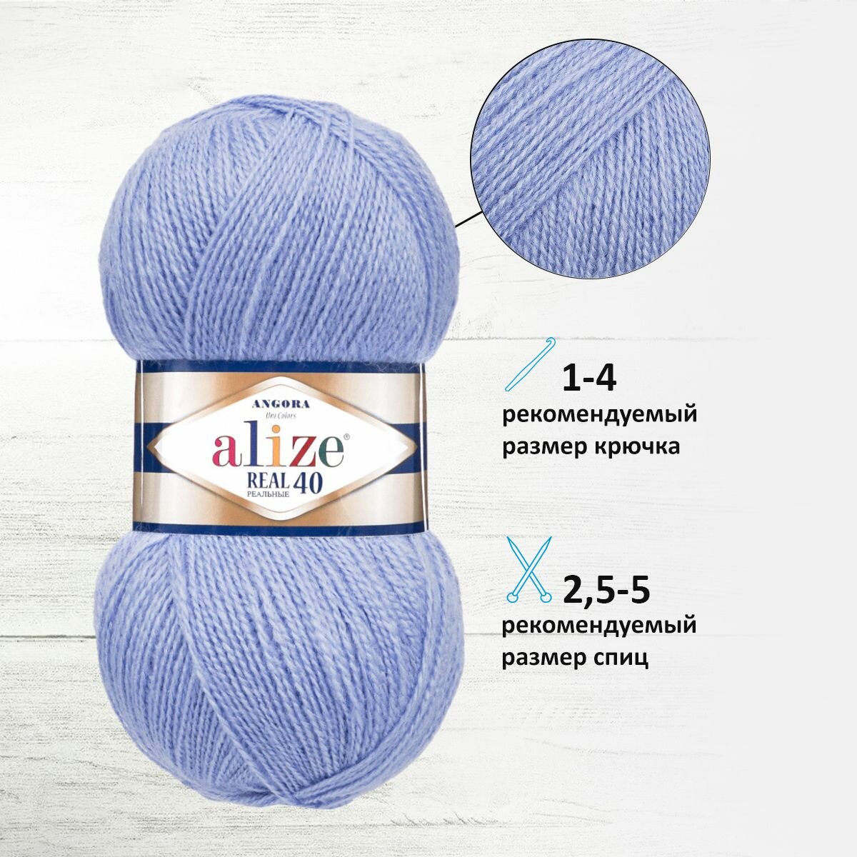 Пряжа ALIZE ANGORA REAL 40, голубой - 40, 40% шерсть, 60% акрил, 5 мотков, 100 г, 430 м.