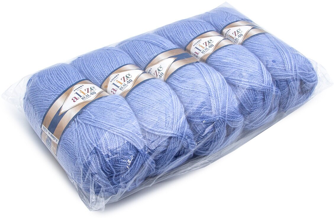 Пряжа Alize Angora Real 40 (Ангора Реал 40) - 5 мотков цвет 40 голубой 40% шерсть, 60% акрил 100г 480м