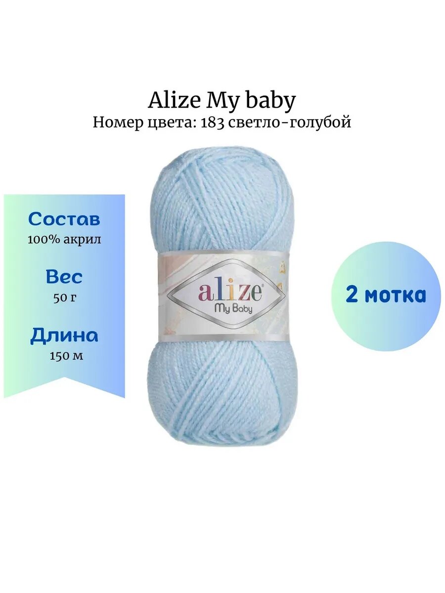 Купить Пряжа Alize My baby светло-голубой (183), 100%акрил, 150м, 50г, 2шт