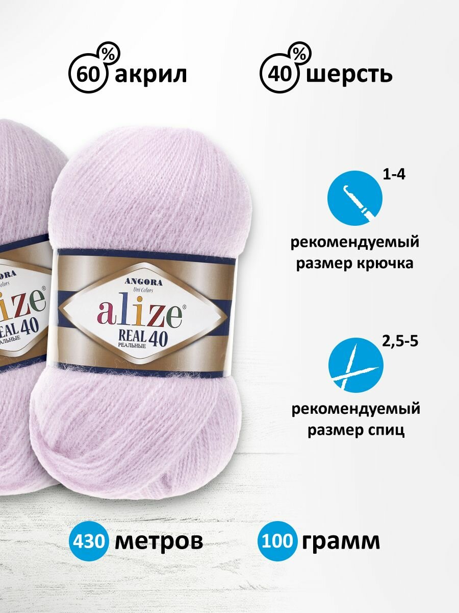 Пряжа Alize Angora Real 40 сирень (146), 60%акрил/40%шерсть, 430м, 100г, 5шт
