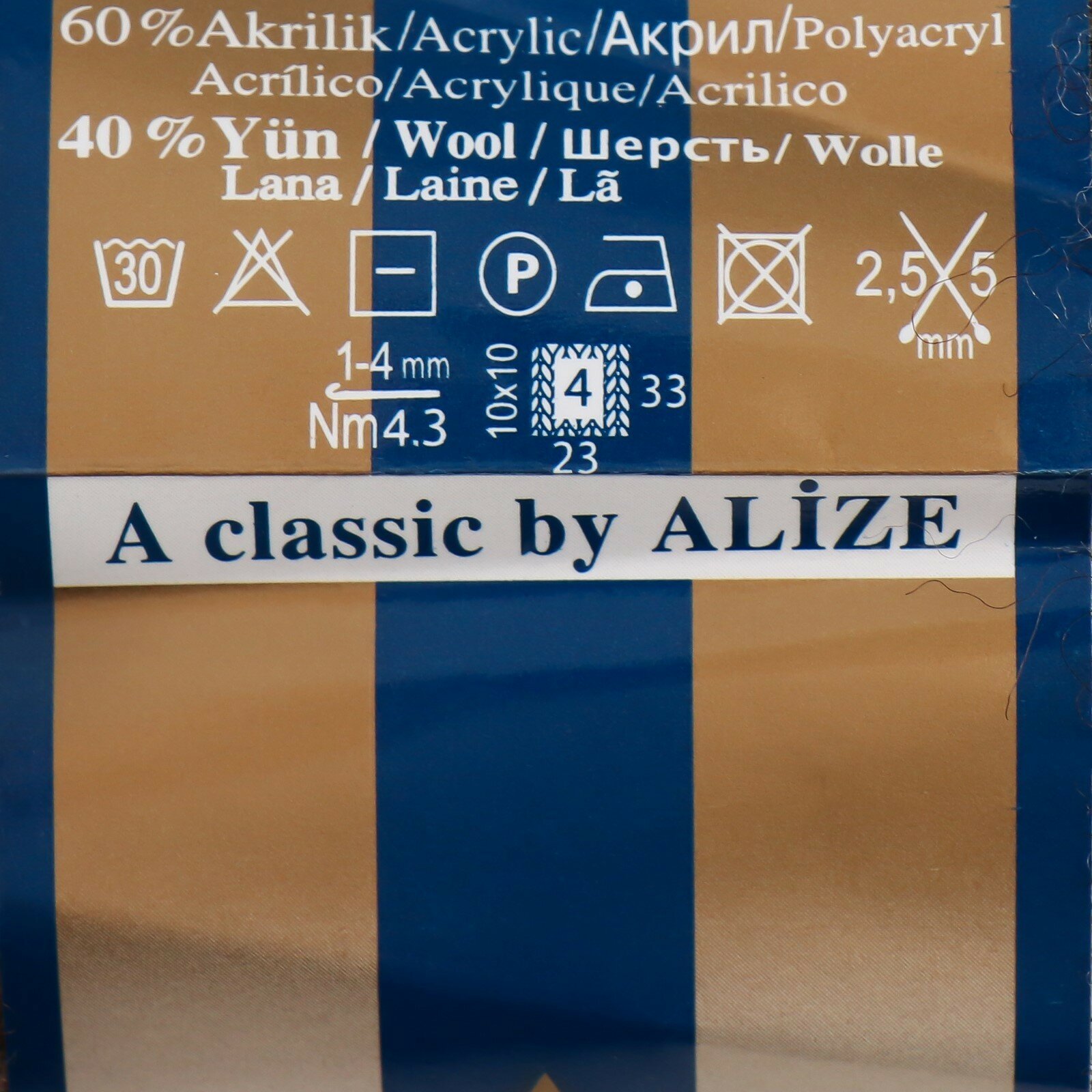 Пряжа ALIZE "Angora real 40", 100 гр 430 м, 40% шерсть, 60% акрил, 58 темно-синий, 5 шт