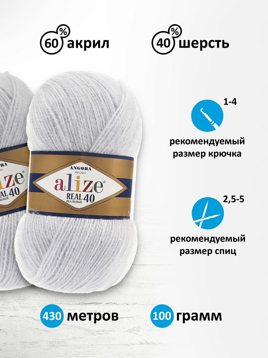 Пряжа Alize Angora Real 40 талая вода (52), 60%акрил/40%шерсть, 430м, 100г, 2шт