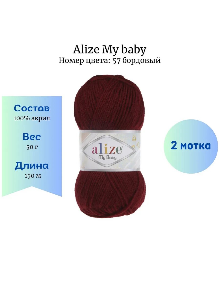 Пряжа для вязания Alize My baby 57 бордовый 2 шт 50 гр/150 м 100% акрил