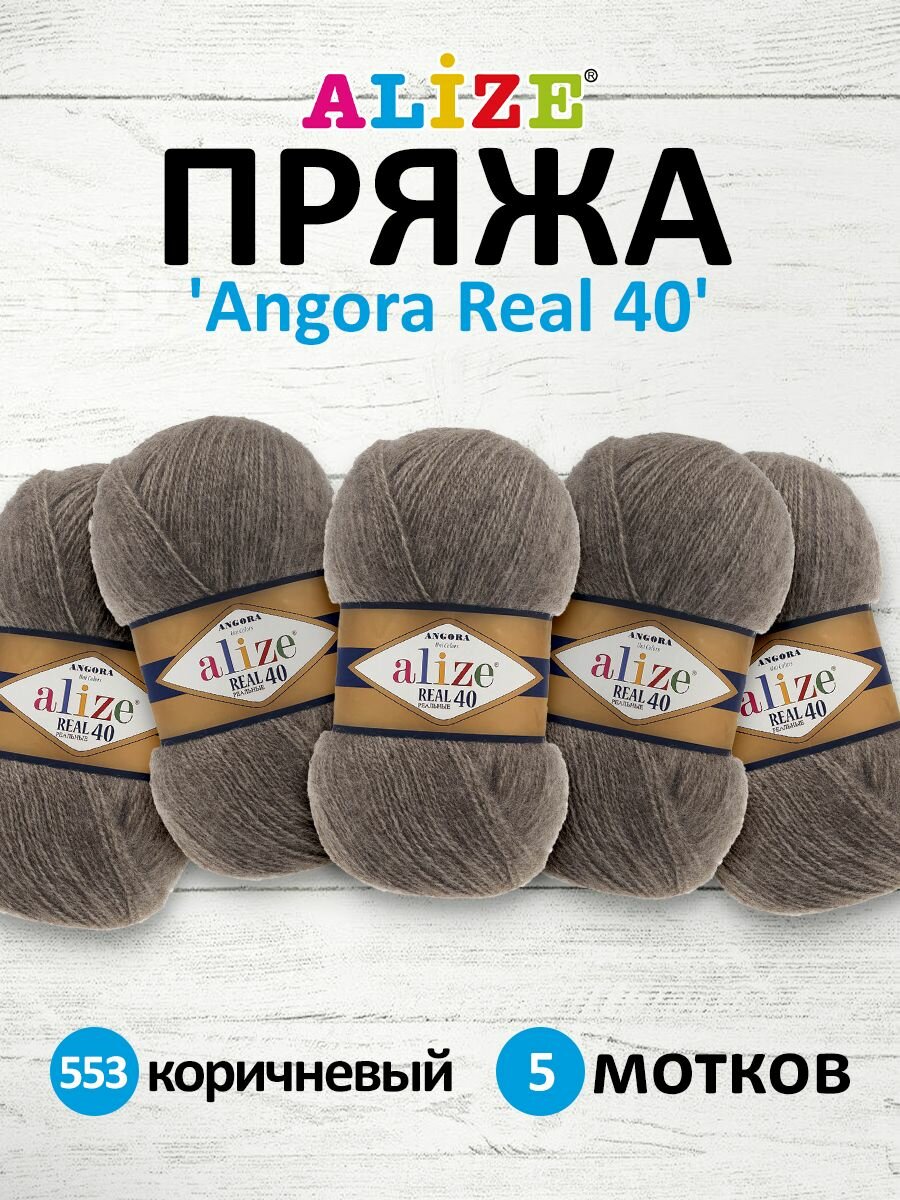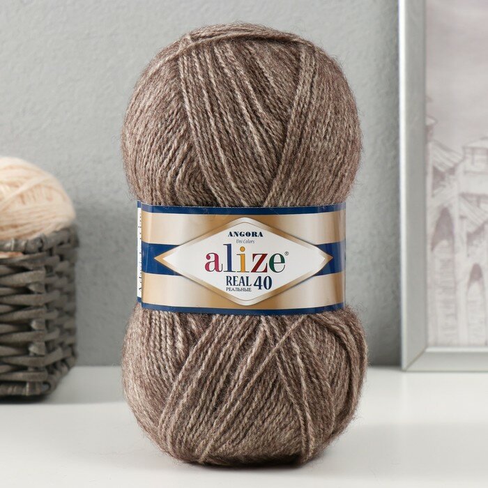Купить Пряжа для вязания Alize Angora Real 40 553 коричневый меланж, 100 г, 480 м, 5 штук