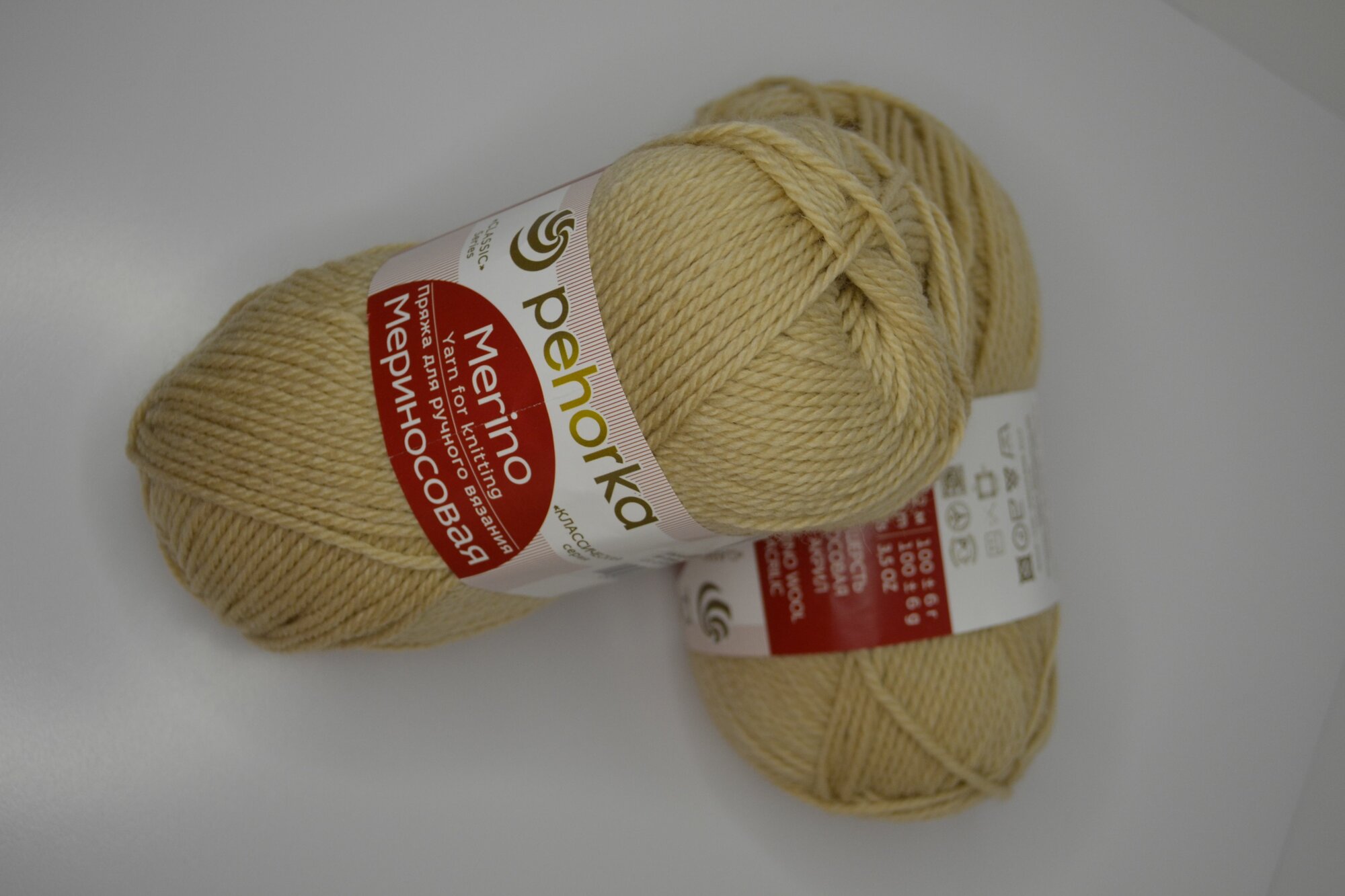 Пряжа Пехорка "Мериносовая" - 1 шт, цвет: 124-Песочный, 200м/100г, 50% мериносовая шерсть, 50% акрил