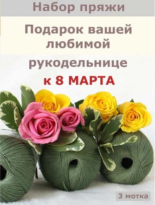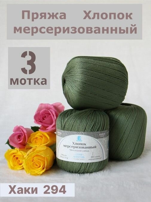 СохранитьПряжа Камтекс "Хлопок мерсеризованный", цвет: 294 - Хаки, 3 шт., хлопок 100%, 50 г. 200 м. интересное: