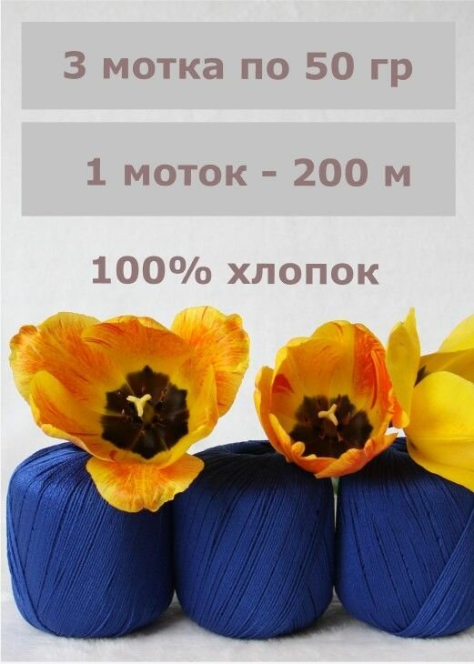 СохранитьПряжа Камтекс "Хлопок мерсеризованный", цвет: 019 - Василек, 3 шт., хлопок 100%, 50 г. 200 м. интересное: