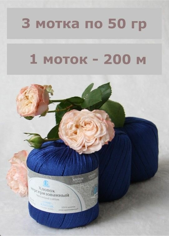 Пряжа Камтекс Хлопок мерсеризованный василек (19), 100%мерсеризованный хлопок, 200м, 50г, 1шт