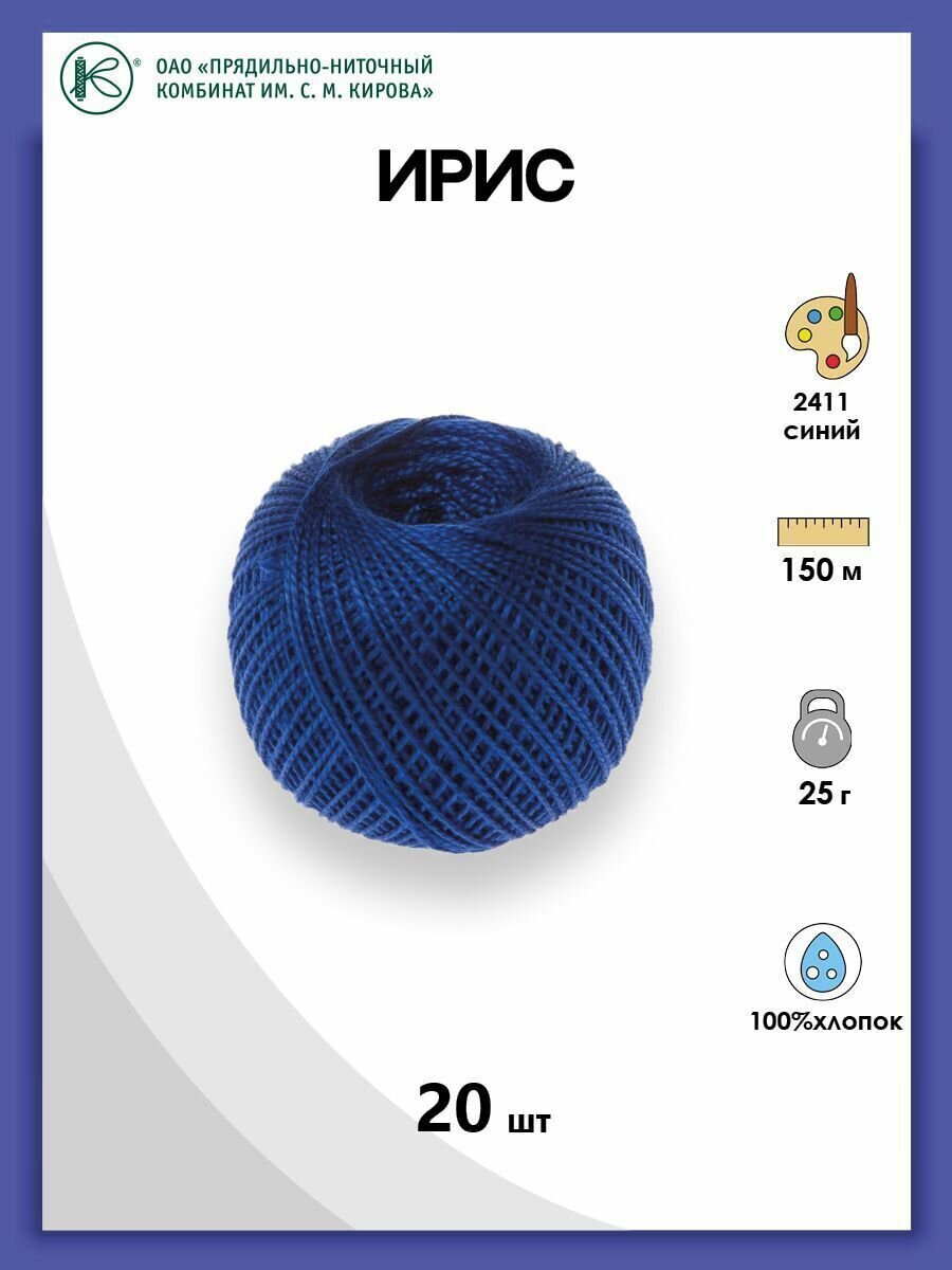 Купить Нитки для вязания и плетения 'ирис' (100% хлопок), 25г, 150м (2411 синий), 20 мотков