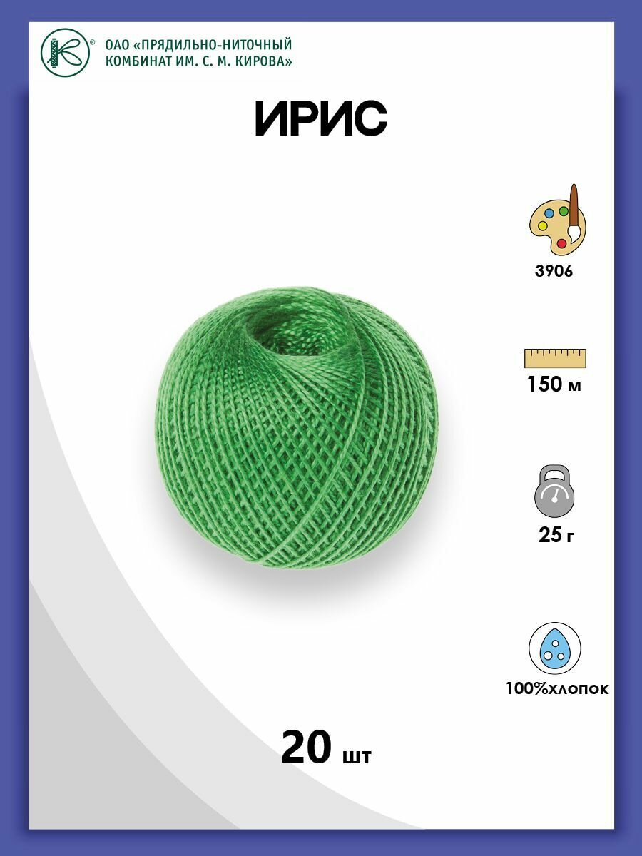 Нитки вязальные ПНК Кирова Ирис", 100% хлопок, 20 шт по 25 г, 150 м, цвет 4306, зеленый (ирис.4306)