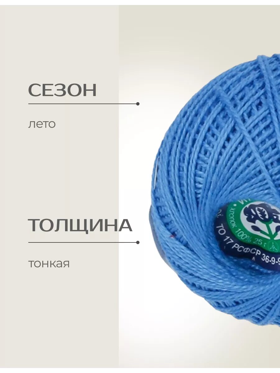 СохранитьНитки для вязания и плетения 'ирис' (100% хлопок), 25г, 150м (2508 ярко-голубой), 20 мотков интересное: