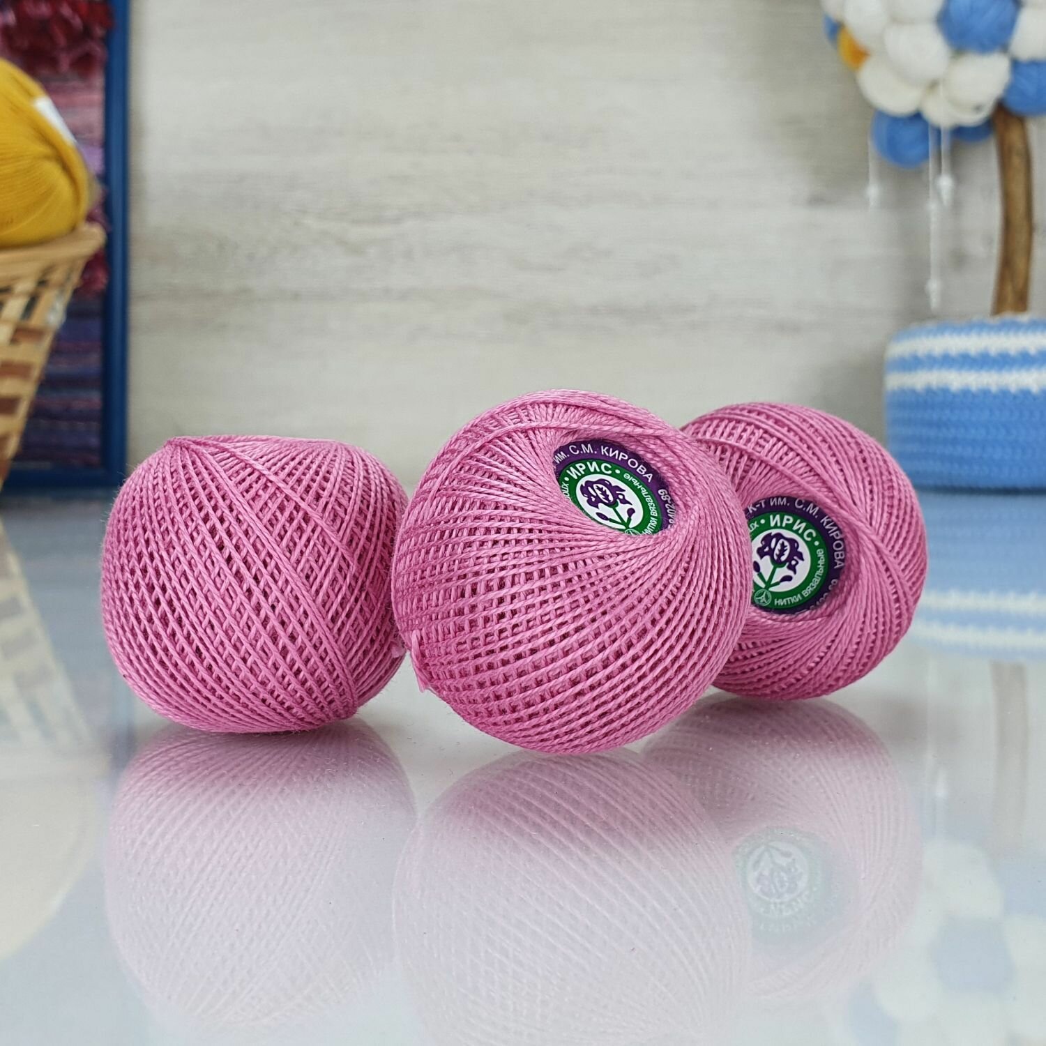 Нитки для вязания крючком ПНК им. Кирова 'ирис' (100% хлопок) 25г, 150м (1110 мальва), 20 мотков